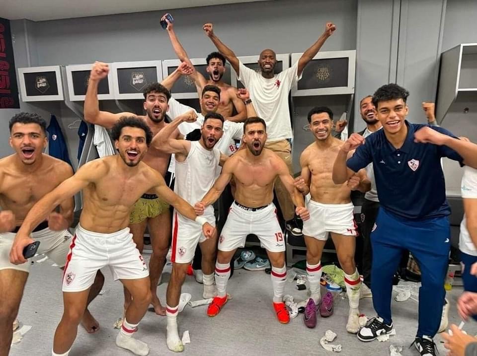 احتفالات لاعبي الزمالك في غرف الملابس بعد الفوز على الأهلي (صور)