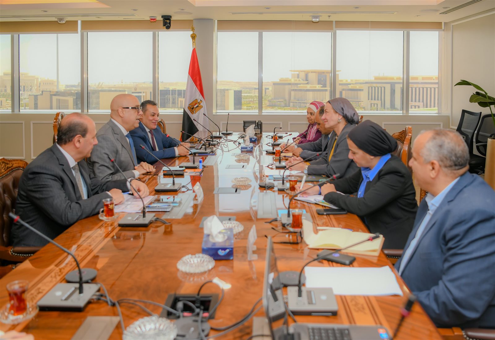 عقد الدكتور عاصم الجزار، وزير الإسكان والمرافق والمجتمعات العمرانية، والدكتورة ياسمين فؤاد، وزيرة البيئة، اجتماعًا بمقر وزارة الإسكان بالعاصمة الإدارية الجديدة، لمناقشة مقترحات إدارة وتشغيل مشروع تطوير موقع التجلى الأعظم فوق أرض السلام بمدينة سانت كاترين، والأنشطة المنفذة بالمشروع بما يتناسب مع البيئة المحيطة وفقا لأسس ومبادئ التنمية المستدامة، وتحقيق الاستغلال الأمثل للموارد والمقومات التي تتميز بها المنطقة، وذلك بحضور مسئولى الوزارتين.