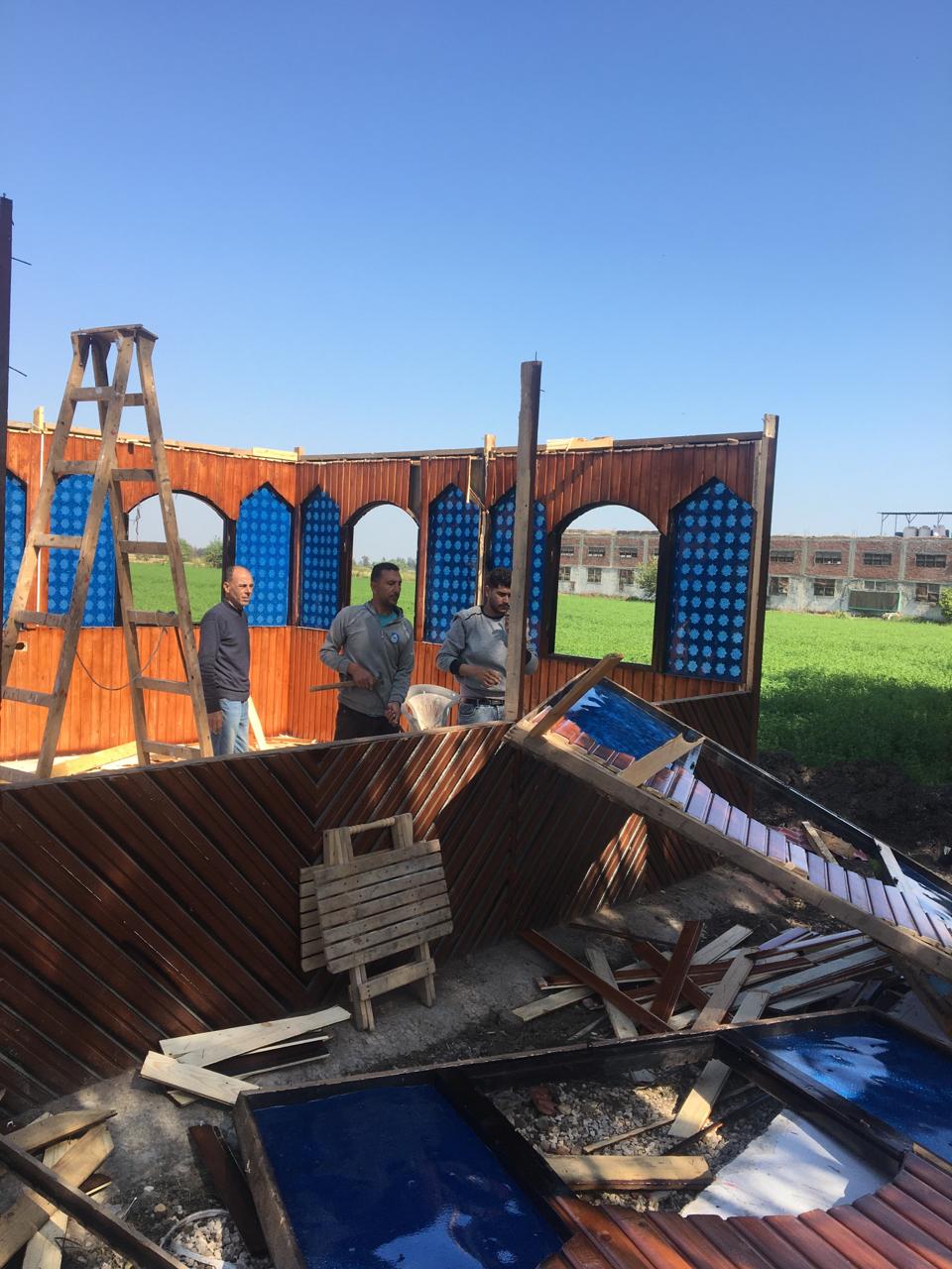 ففي مركز ومدينة طلخا قال المحاسب سيد النخيلي رئيس المركز والمدينة انه تم متابعة تنفيذ أعمال إزالة وفك شدة خشبيه وشبكه حديديه بغرض صب سقف بالدور الثالث العلوي بدون ترخيص داخل الحيز العمراني بقرية كفر الطويله التابعه للوحده المحليه بديسط بمشاركة مامور مركز شرطة طلخا ونواب رئيس مدينة طلخا وتم اتخاذ الاجراءات القانونية حيال المخالفة.