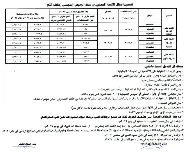 زيادة خامسة قدرها 400 جنيه في بدل صعود المنبر في مارس 2023.