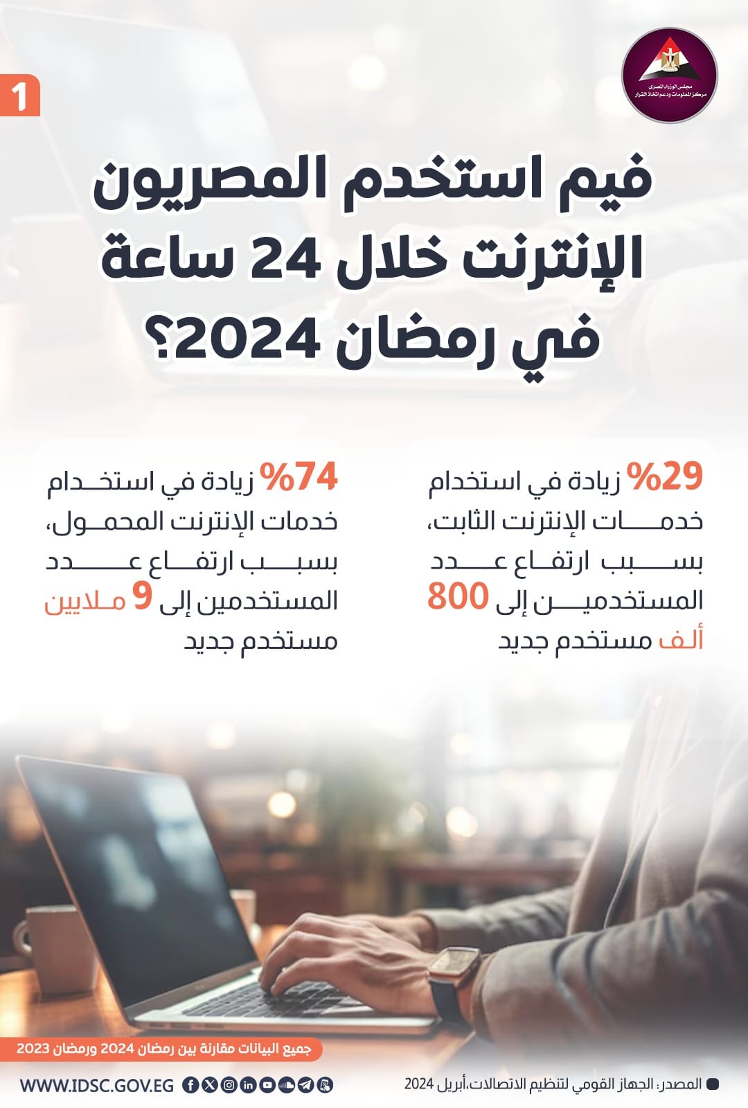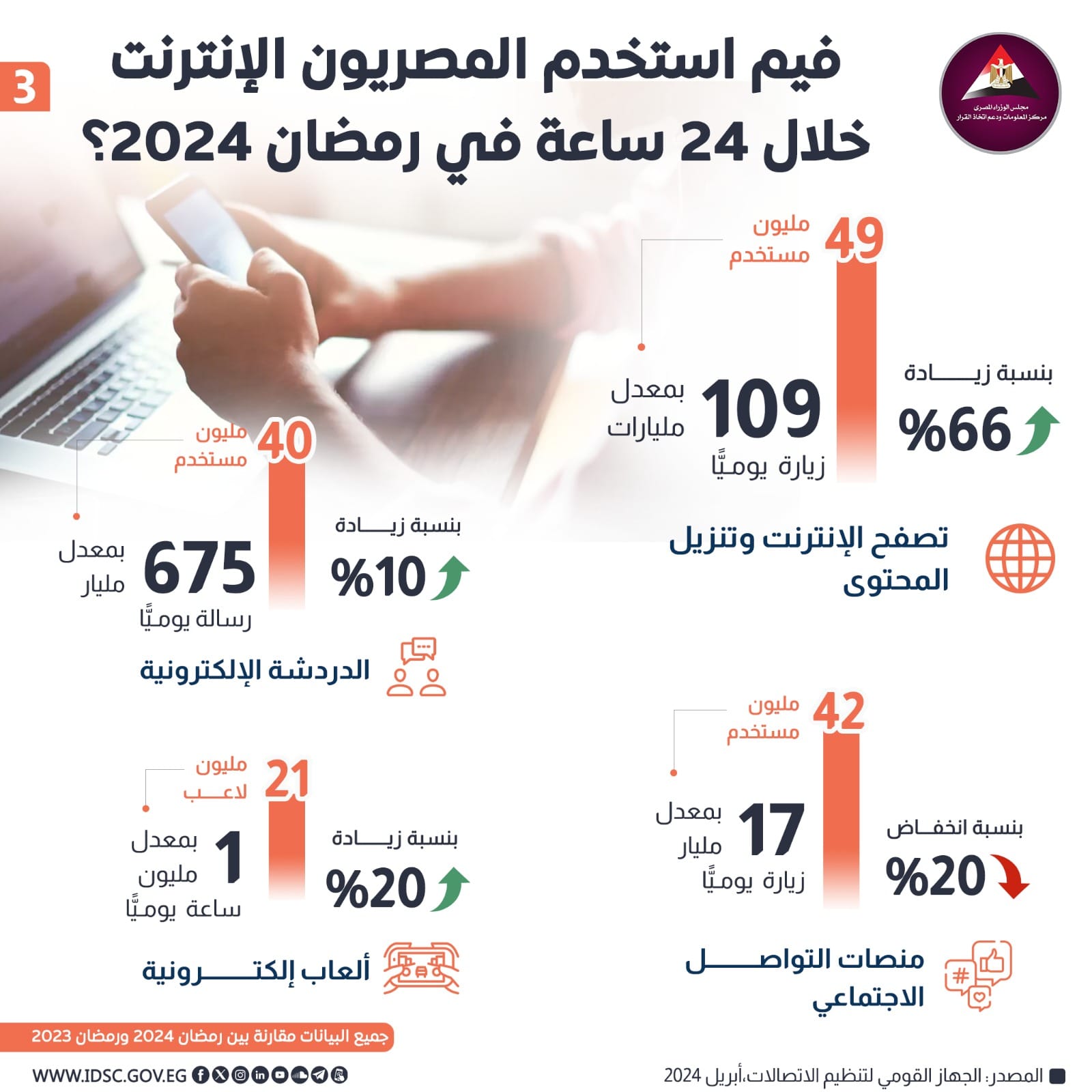 9 ملايين مستخدم جديد.. فيمَ استخدم المصريون الإنترنت في رمضان 2024؟ (إنفوجراف)