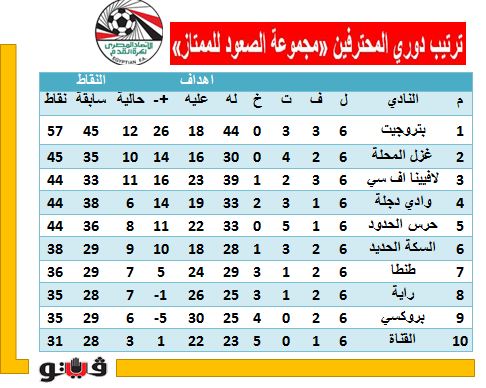 ترتيب دوري المحترفين، يتصدر بتروجت جدول ترتيب دوري المحترفين “دوري القسم الثاني أ” مجموعة الصعود برصيد 57 نقطة بعد إنتهاء الجولة السادسة بمشاركة 10 فرق.