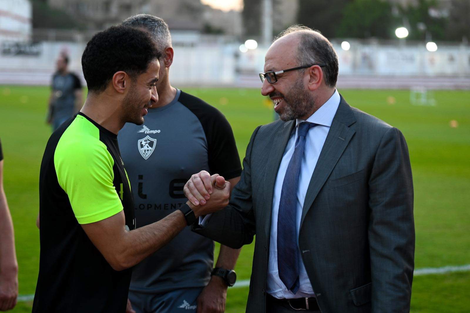 حسين لبيب يهنئ لاعبي الزمالك بالفوز على الأهلي ويطالبهم بغلق ملف مباراة القمة (صور)
