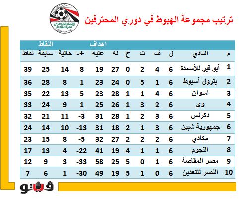 جدول ترتيب مجموعة الهبوط في دوري المحترفين