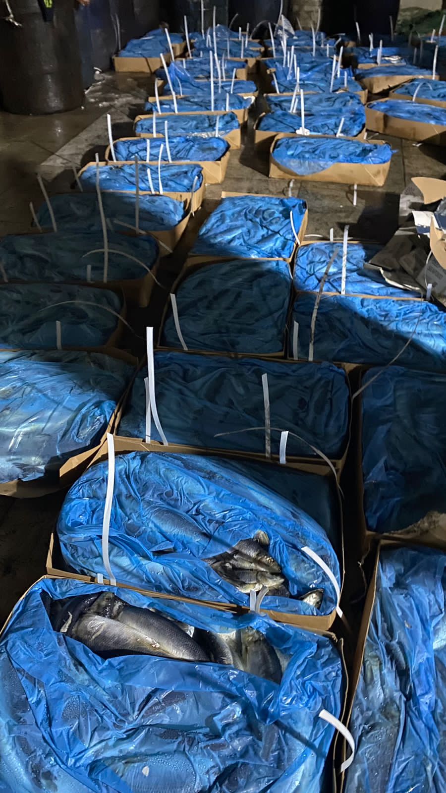 وأسفرت الحملة عن ضبط 5 أطنان أسماك مملحة مجهول المصدر، ومتغير بالخواص ولا يوجد عليه أي بيانات، كما تم ضبط 12000 عبوة تعبئة لاستعمال بيانات وعنواين مزيفه.