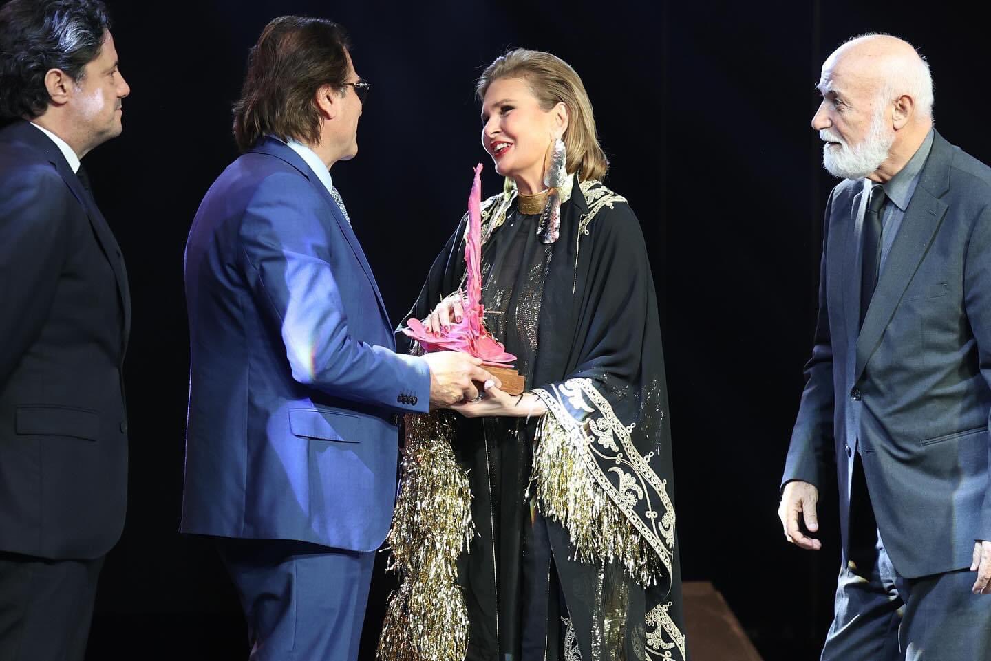 نشرت الفنانة يسرا صورا جديدة لها من حفل تكريمها الأخير بمهرجان بيروت لسينما المرأة.