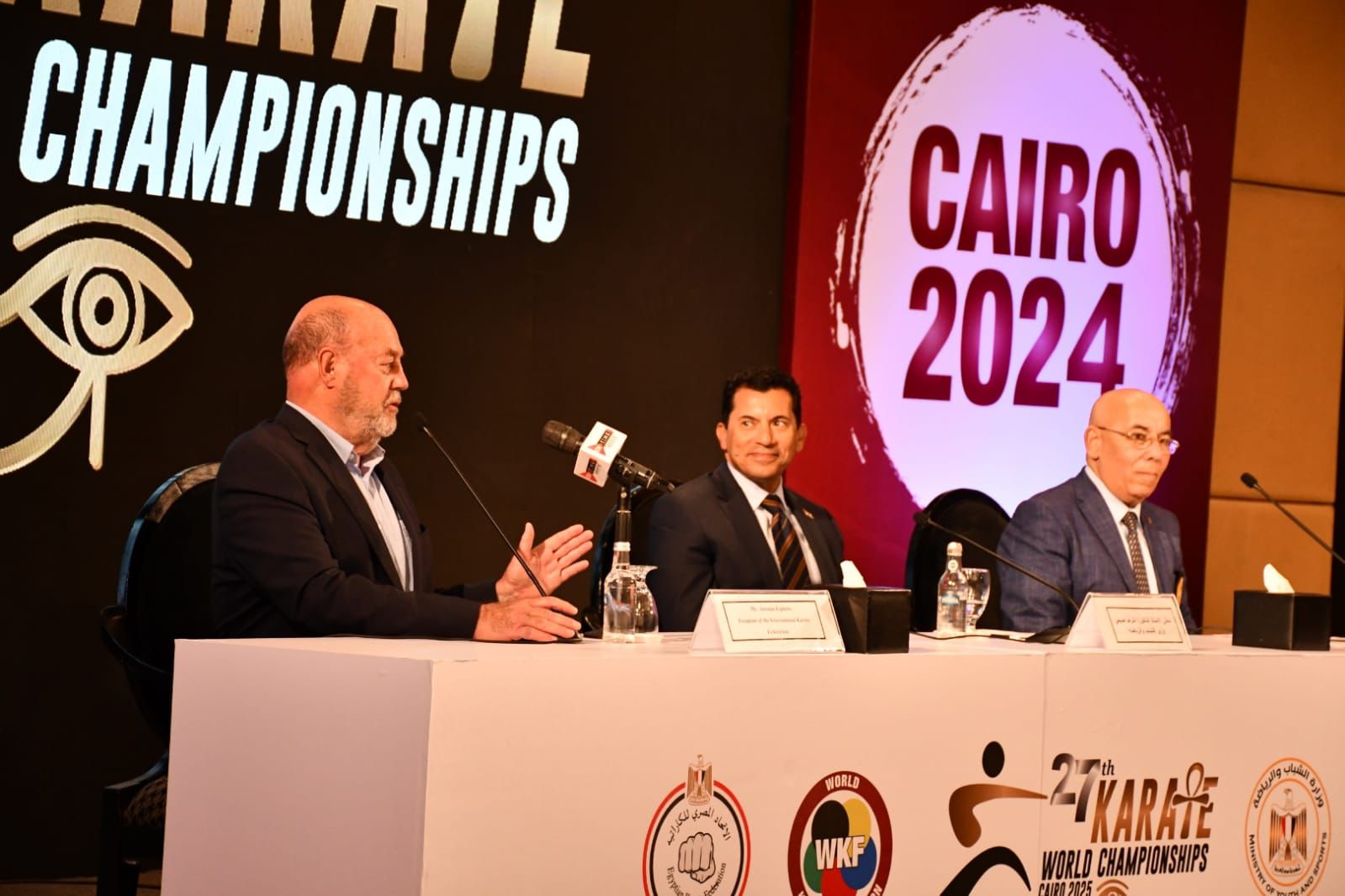 شهد الدكتور أشرف صبحي، وزير الشباب والرياضة، وقائع المؤتمر الصحفي للإعلان عن استضافة مصر لبطولة العالم للكاراتيه بعد غياب 37 عاما، وعودة مصر لاستضافتها مرة أخرى، حيث استضافت مصر آخر نسخة عام 1988.