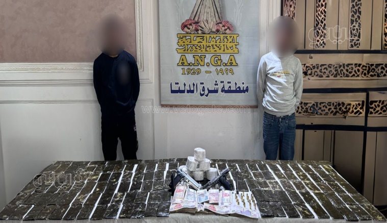 وعقب تقنين الإجراءات تم استهداف وضبط عاطلين "لهما معلومات جنائية" بدائرة قسم شرطة المنزلة بالدقهلية، وبحوزتهما (14,600 كيلو جرام لمخدر الحشيش – 3 كيلو جرام لمخدر الهيروين – 2 طبنجة وعدد من الطلقات).