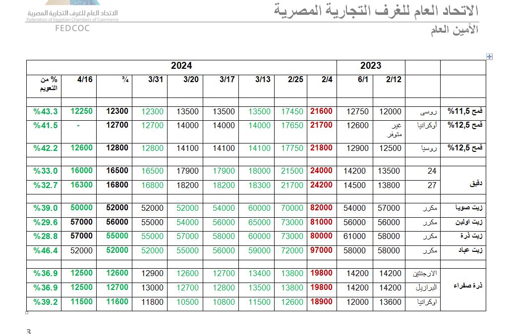 وأوضح أن قمح 11.5% روسي سجل 12250 جنيهًا بانخفاض قدره 43.3 % منذ قرار تحرير سعر الصرف.