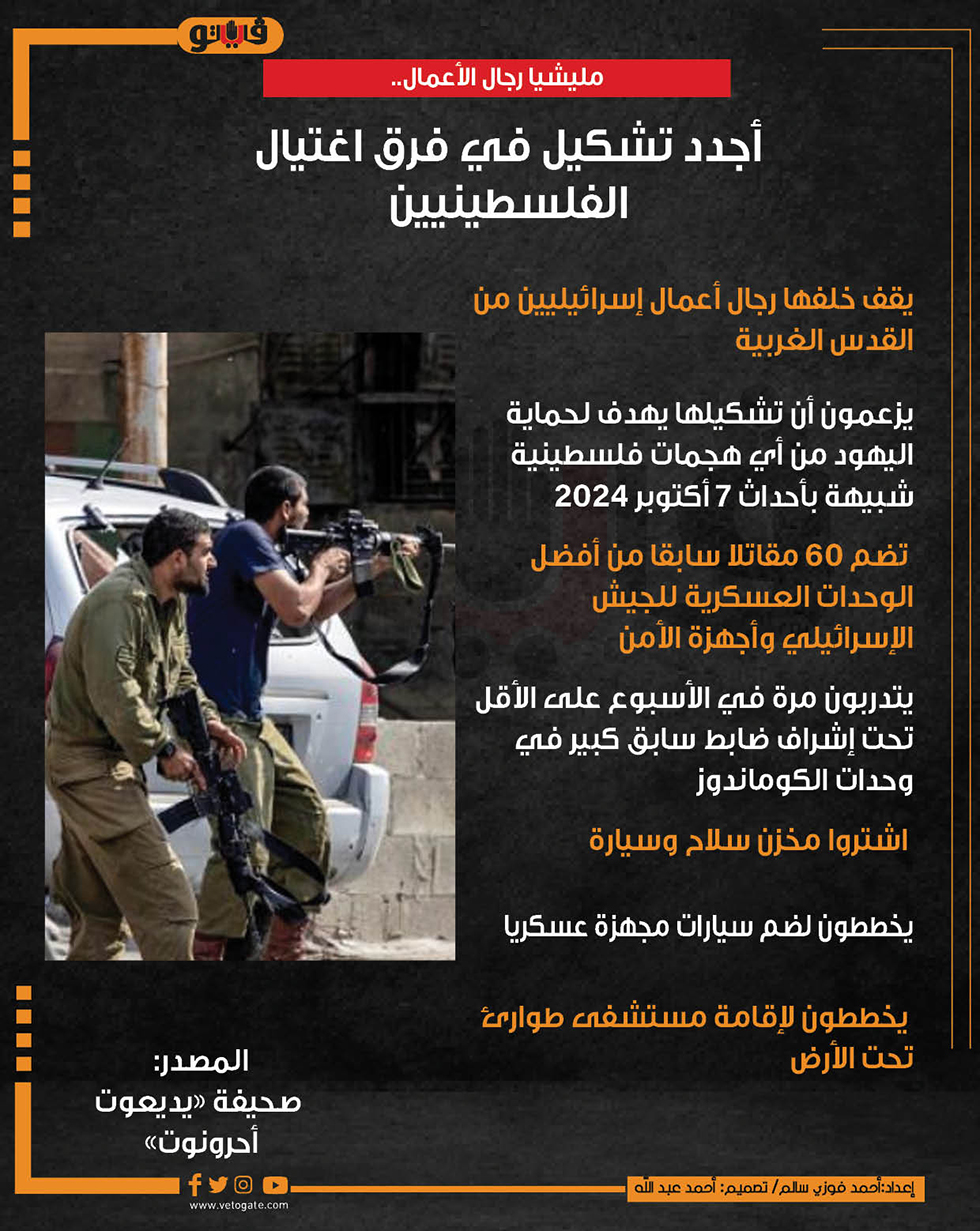 مليشيا رجال الأعمال.. أجدد تشكيل في فرق اغتيال الفلسطينيين (إنفوجراف) الإثنين 22/أبريل/2024 - 09:43 ص 4/22/2024 9:43:53 AM صورة أرشيفية، فيتو احمد فوزى سالم شارك طباعة 18 حجم الخط شارك طباعة ميليشيا رجال الأعمال الصهاينة رجال أعمال إسرائيل إسرائيل حماس القدس الغربية