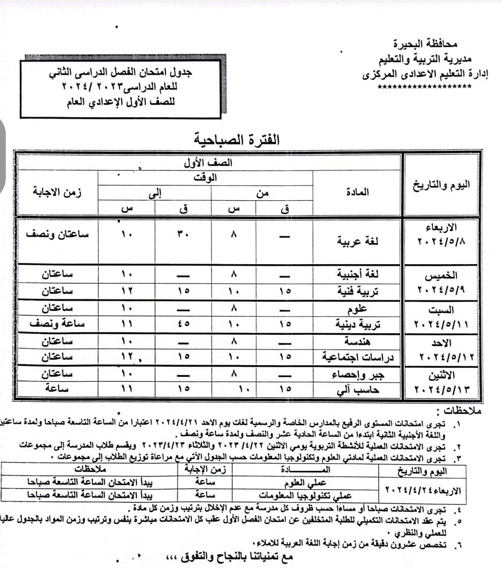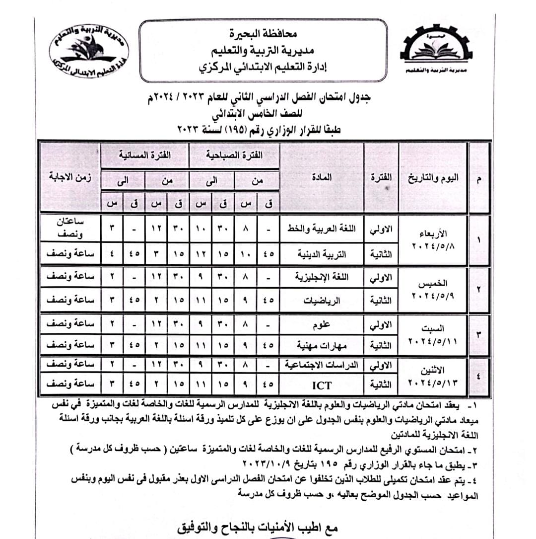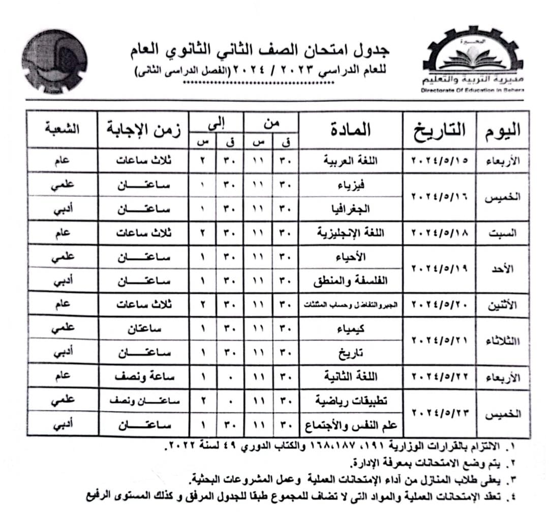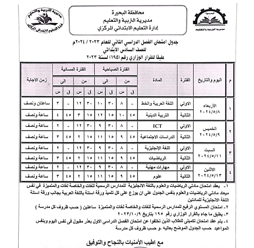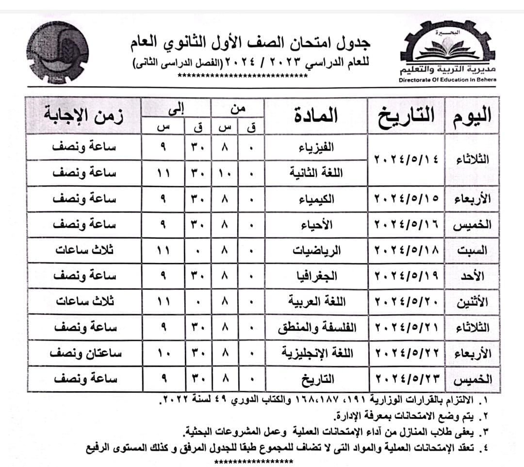 ننشر جداول مواعيد امتحانات الفصل الدراسي الثاني بمحافظة البحيرة