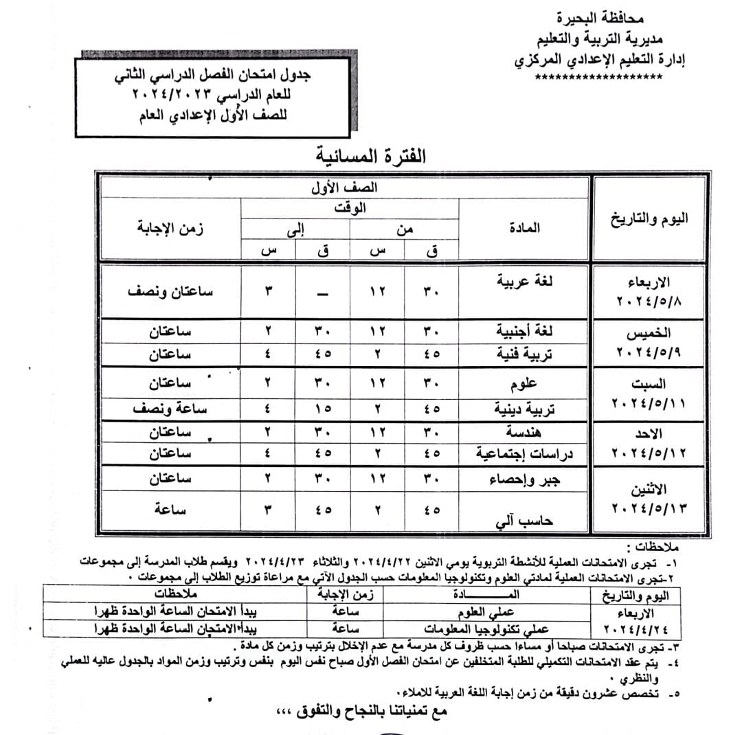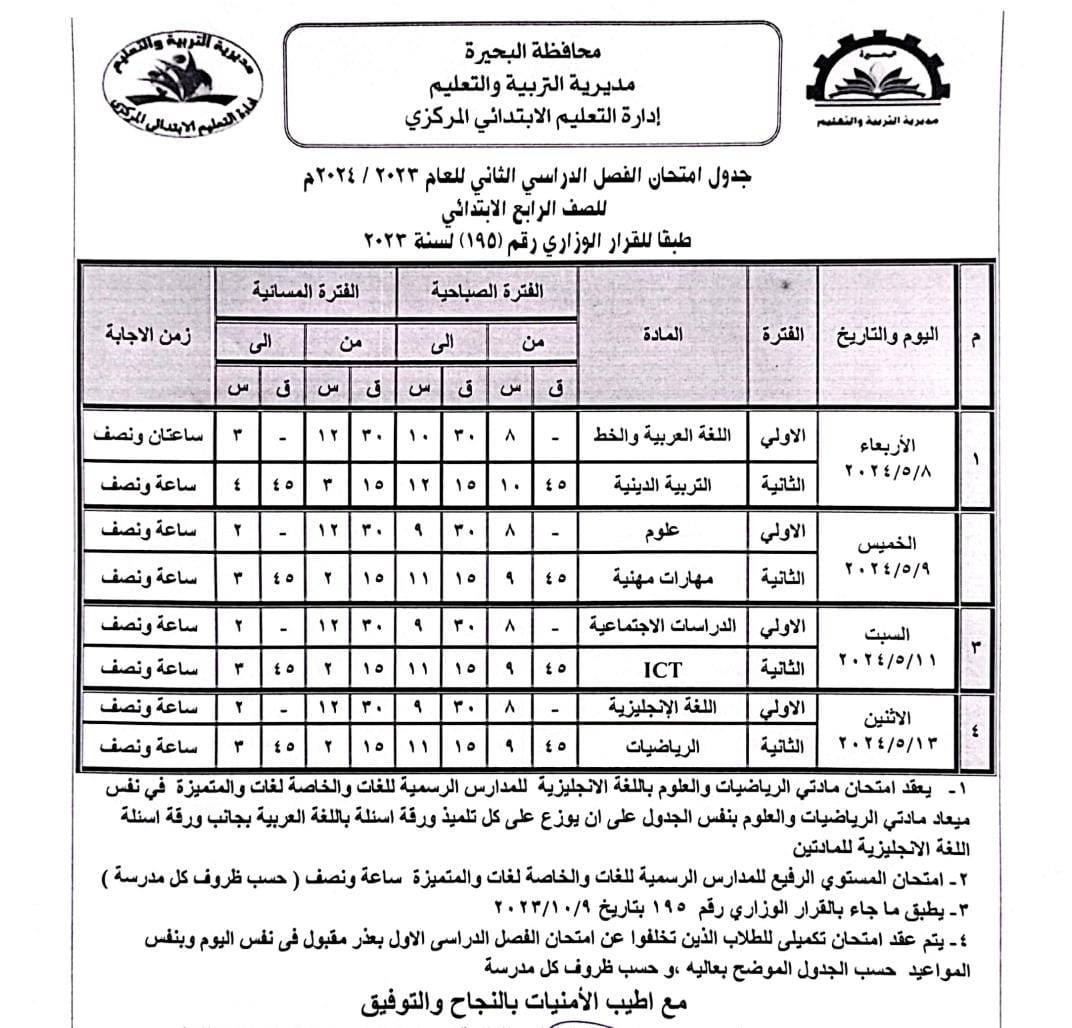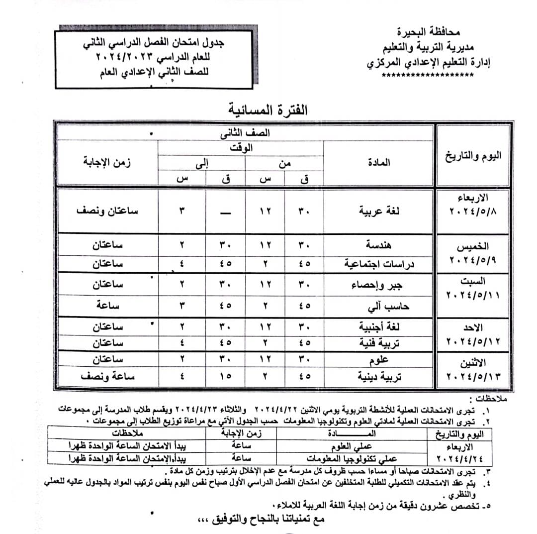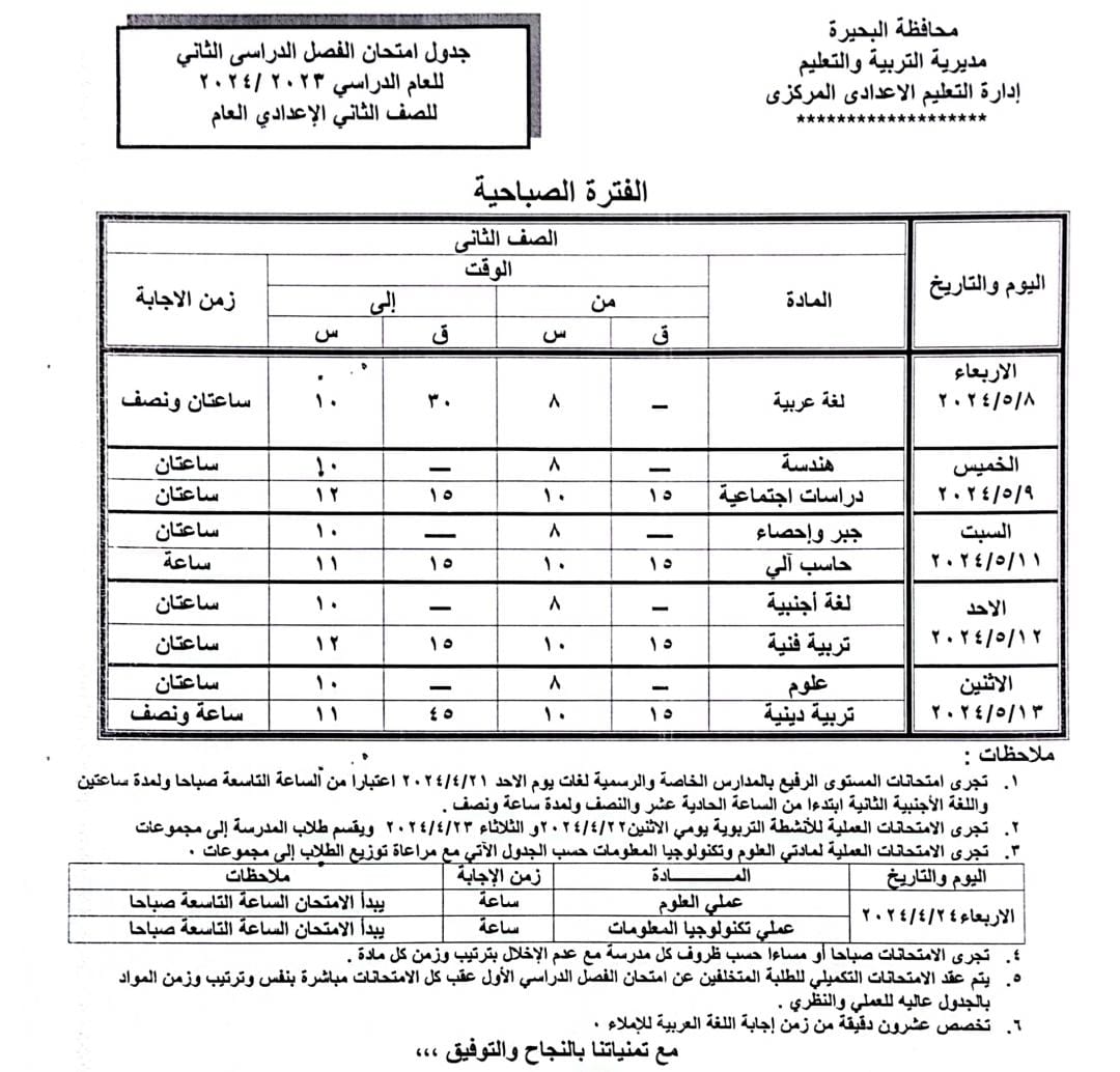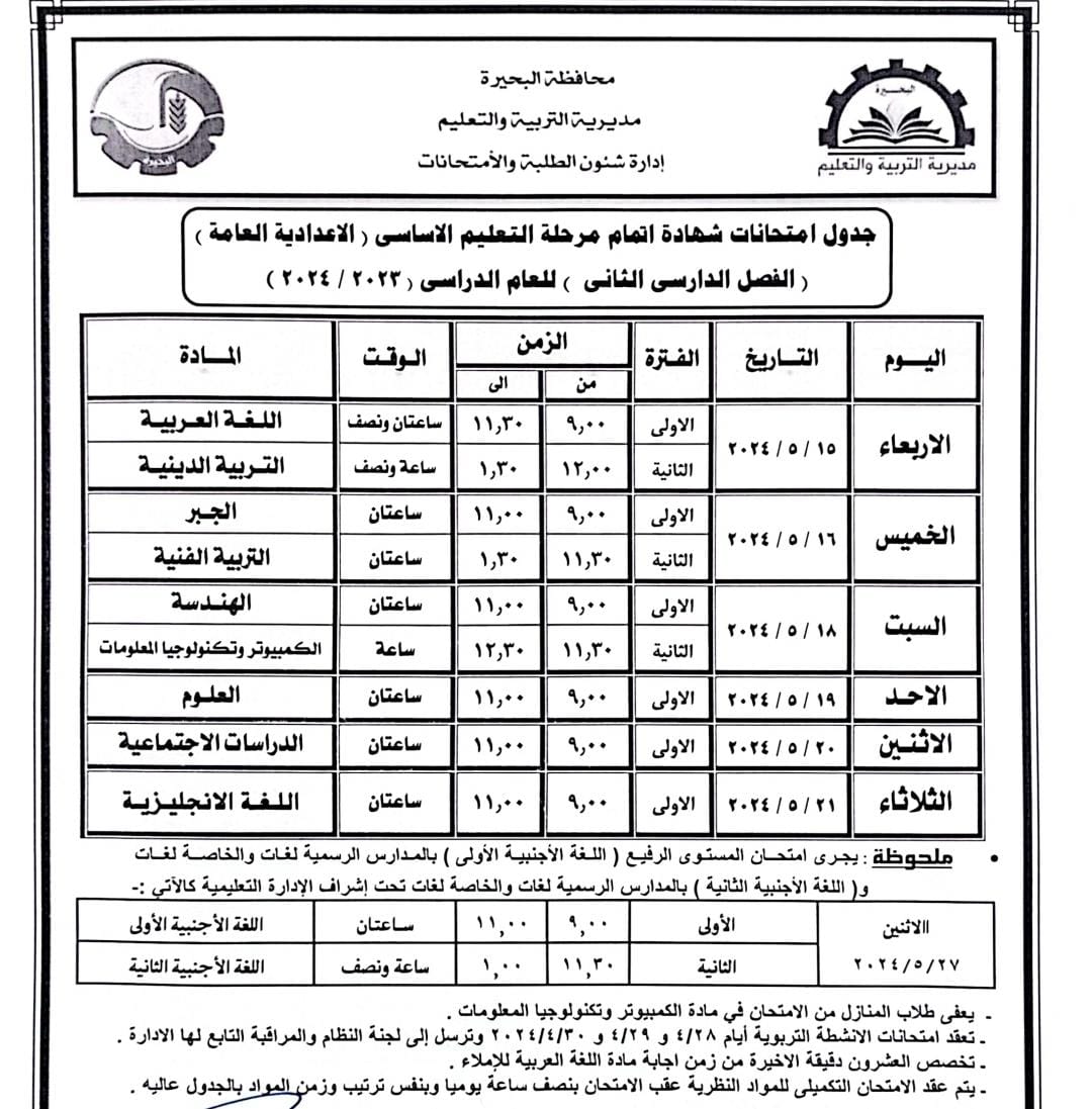 ننشر جداول مواعيد امتحانات الفصل الدراسي الثاني بمحافظة البحيرة