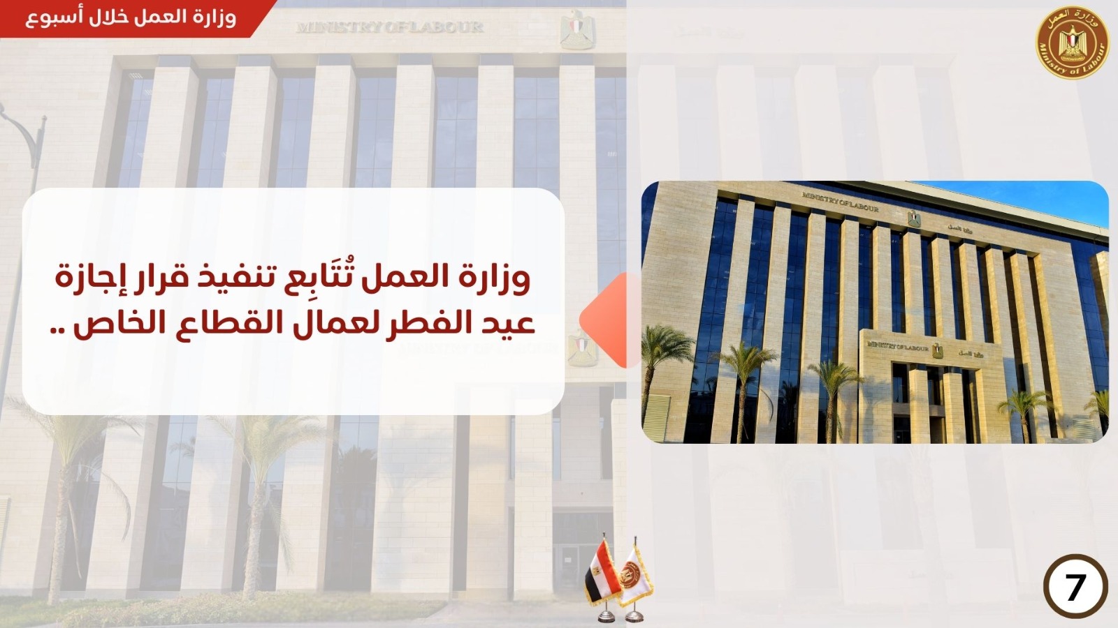 ووجّه حسن شحاتة،وزير العمل، مديري مديريات العمل ومكاتبها في المحافظات،متابعة تنفيذ قرار إجازة مدفوعة الأجر، أُعطيت للعاملين في القطاع الخاص بالشركات والمصانع، وذلك بمناسبة عيد الفطر المبارك، وتكثيف المتابعة، والحملات التفتيشية بهذا الشأن..