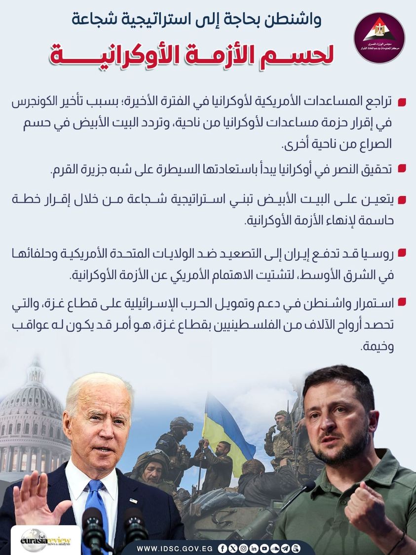 كشفت الصفحة الرسمية لمركز المعلومات ودعم اتخاذ القرار بمجلس الوزراء على موقع التواصل الاجتماعي "فيسبوك" عن حاجة واشنطن إلى استارتيجة شجاعة لحسم الأزمة الأوكرانية.