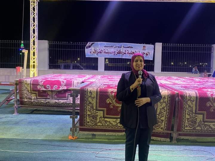 وأوضحت ابتسام عبدالمريد مدير عام فرع ثقافة الوادي الجديد، أن فعاليات البرنامج بدأت بالسلام الوطني أعقبها آيات من الذكر الحكيم وقدمها محمد جيلانى بينما عبر مكاوي - خلال كلمته - عن سعادته البالغة لتوافد أهالى القرية من الآلاف لشباب وأطفال وعربان الفرافرة لحضور الفاعليات الثقافية والفنية منوهًا بأهمية المشاركة الفعالة لنشر الوعي الثقافى وتعزيز قيم المواطنة والانتماء وترسيخ الهوية الوطنية موجهًا دعوة للشباب للمشاركة في الفاعليات الثقافية والفنية التي تقدمها الهيئة العامة لقصور الثقافة بفرع ثقافة الوادى الجديد.