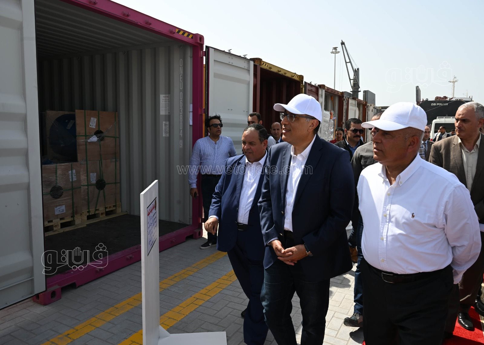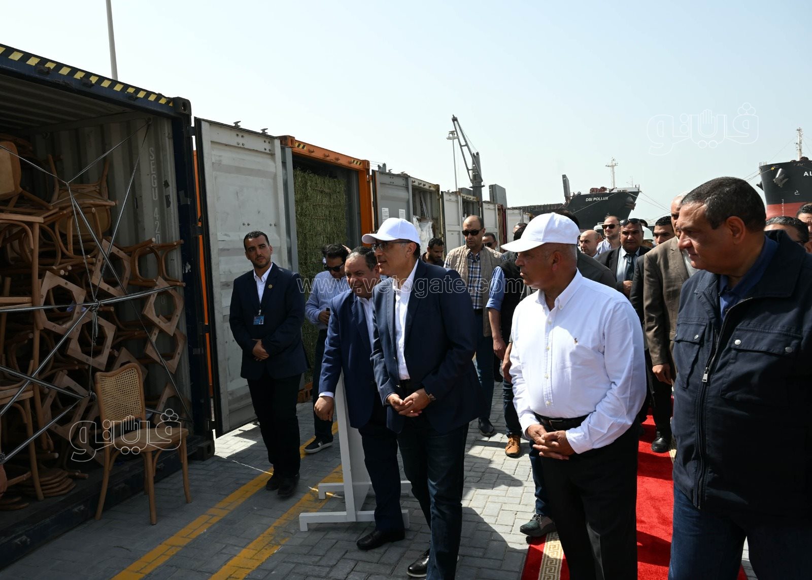 مدبولي يشهد تصدير شحنات كبيرة من مختلف القطاعات الإنتاجية بميناء دمياط (صور)