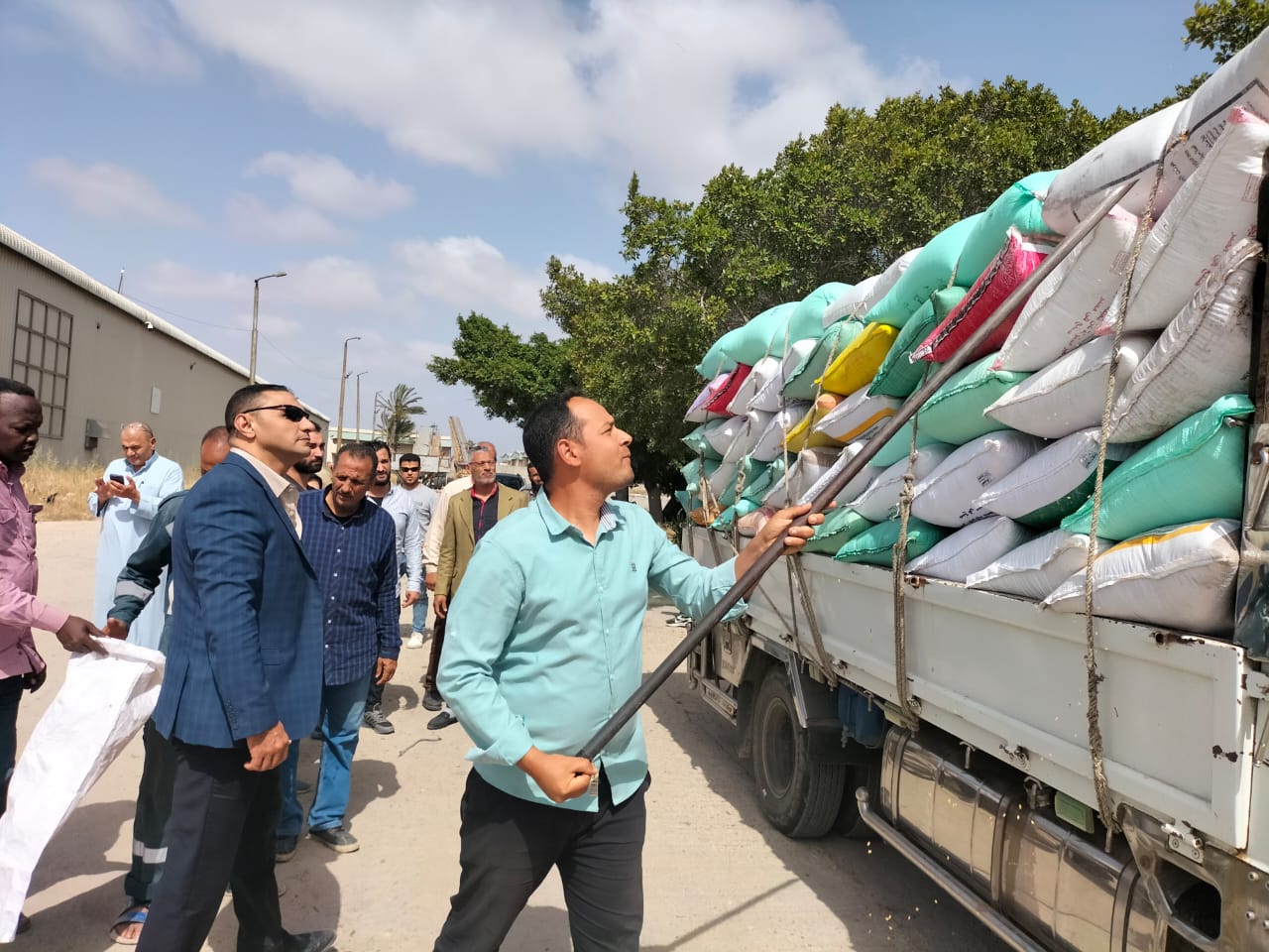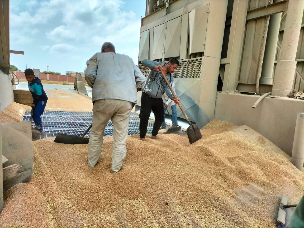 كما تابع استلام القمح المحلى ودخول الشاحنات ووزنها وكذلك عملية سحب العينات وتقريطها لمعرفة درجة التقاوى وكذلك اخذ عينات لمعرفة درجة الرطوبة بالجهاز المخصص لذلك ثم تفريغ الشحنات على النقرة لسحبها للتخزين داخل الخلايا التخزينية المجهزة لذلك