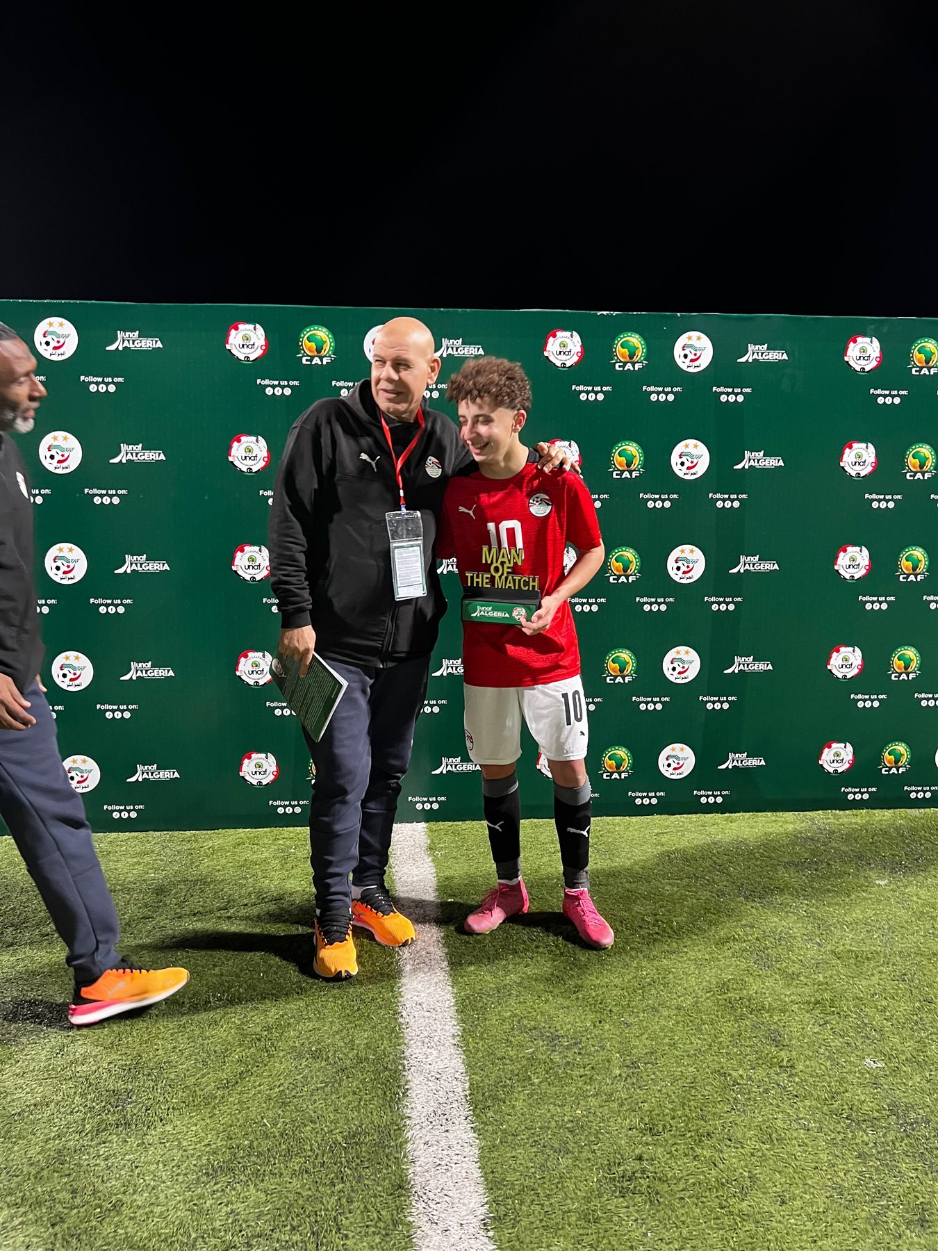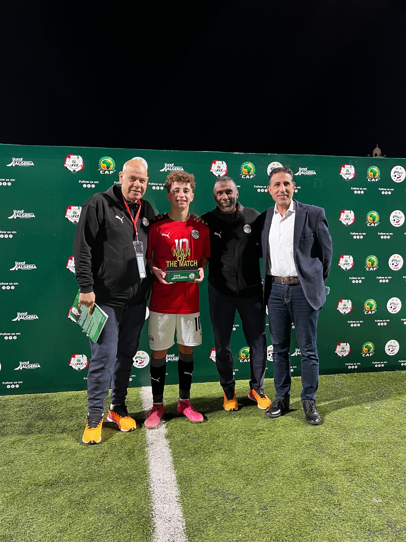 الكومي والكاس وحافظ يحتفون بلاعب منتخب الناشئين رجل مباراة مصر وليبيا (صور)