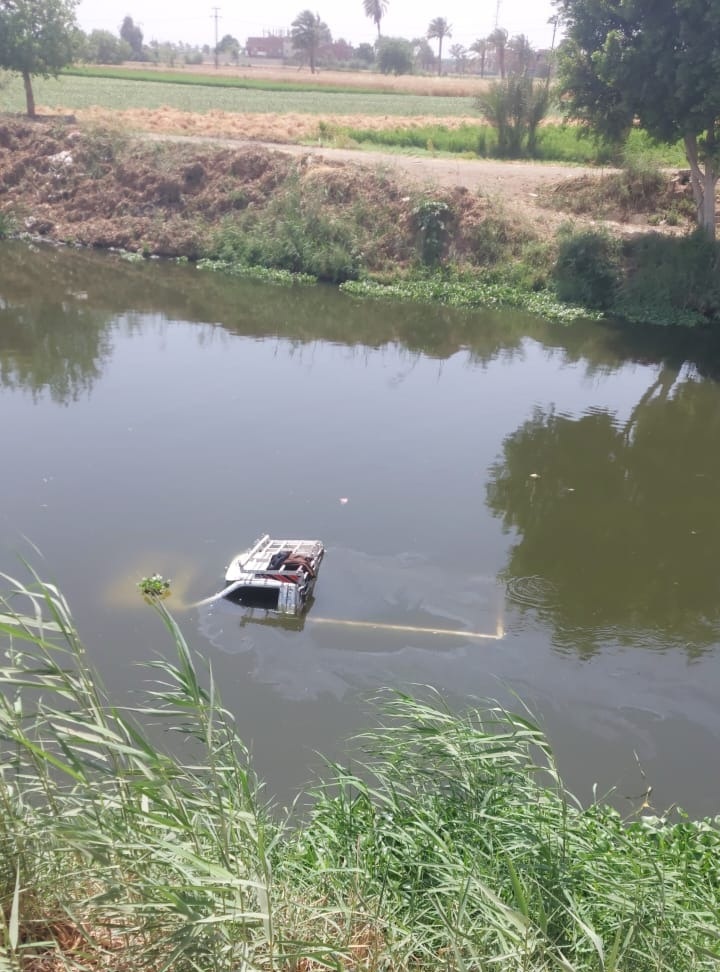 سقوط سيارة في ترعة بهبشين ببني سويف