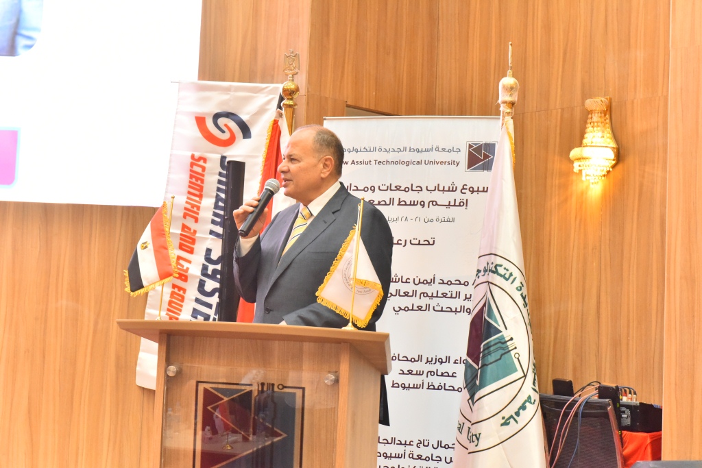 شهد اللواء عصام سعد محافظ أسيوط، اليوم الأحد، انطلاق فعاليات أسبوع شباب جامعات ومدارس إقليم وسط الصعيد، والذى تنظمه جامعة أسيوط الجديدة التكنولوجية تحت رعاية الدكتور محمد أيمن عاشور وزير التعليم العالى والبحث العلمى وذلك بحضور الدكتور جمال تاج عبد الجابر رئيس جامعة أسيوط الجديدة التكنولوجية والدكتور أحمد عبد المولى نائب رئيس جامعة أسيوط لشئون التعليم والطلاب.
