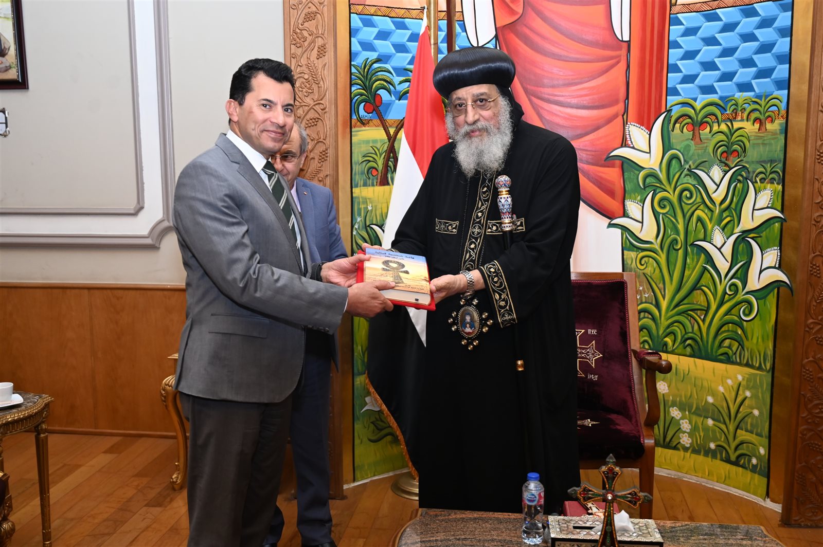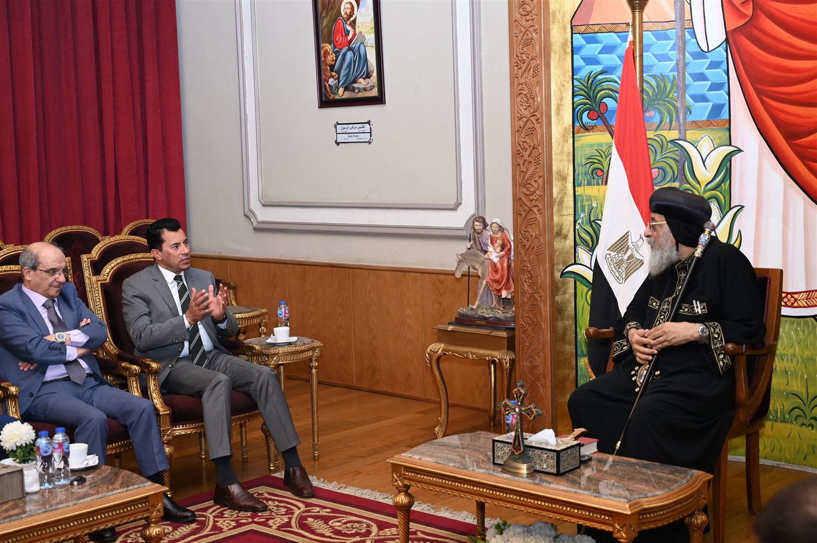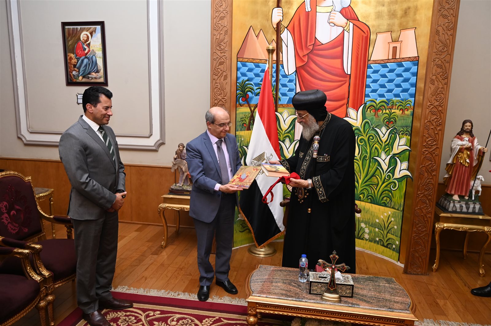 البابا تواضروس يستقبل وزير الشباب والرياضة ونظيره اللبناني
