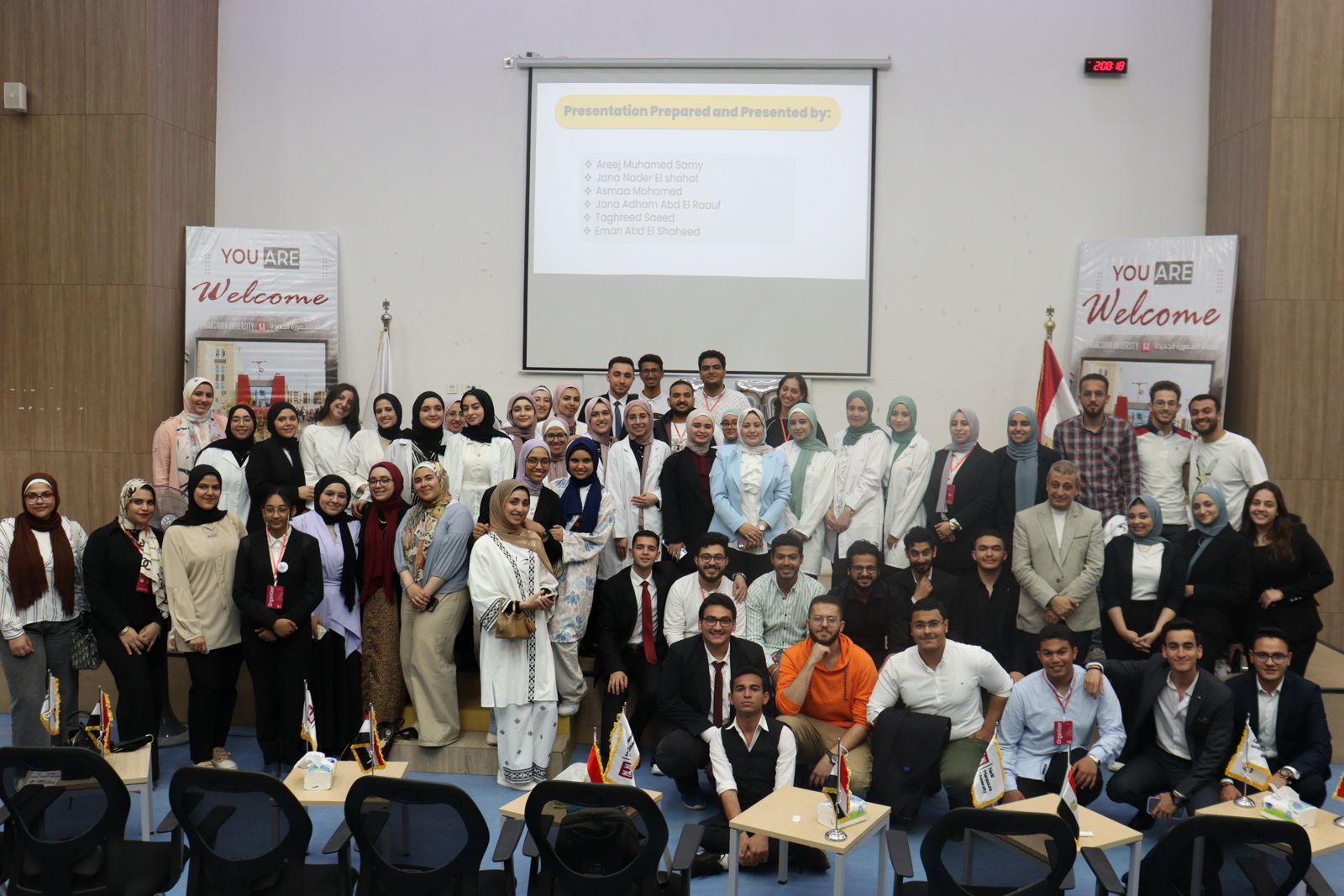 وجاء ذلك تحت رعاية الدكتور معوض محمد الخولي رئيس جامعة المنصورة الجديدة وريادة الدكتورة هالة المرصفاوي عميد كلية الطب والدراسات العليا والبحوث وبإشراف الدكتورة سوزي فايز مدير البرنامج الطبي وتنظيم الدكتورة ولاء حامد منسق الفصل الدراسي الرابع.
