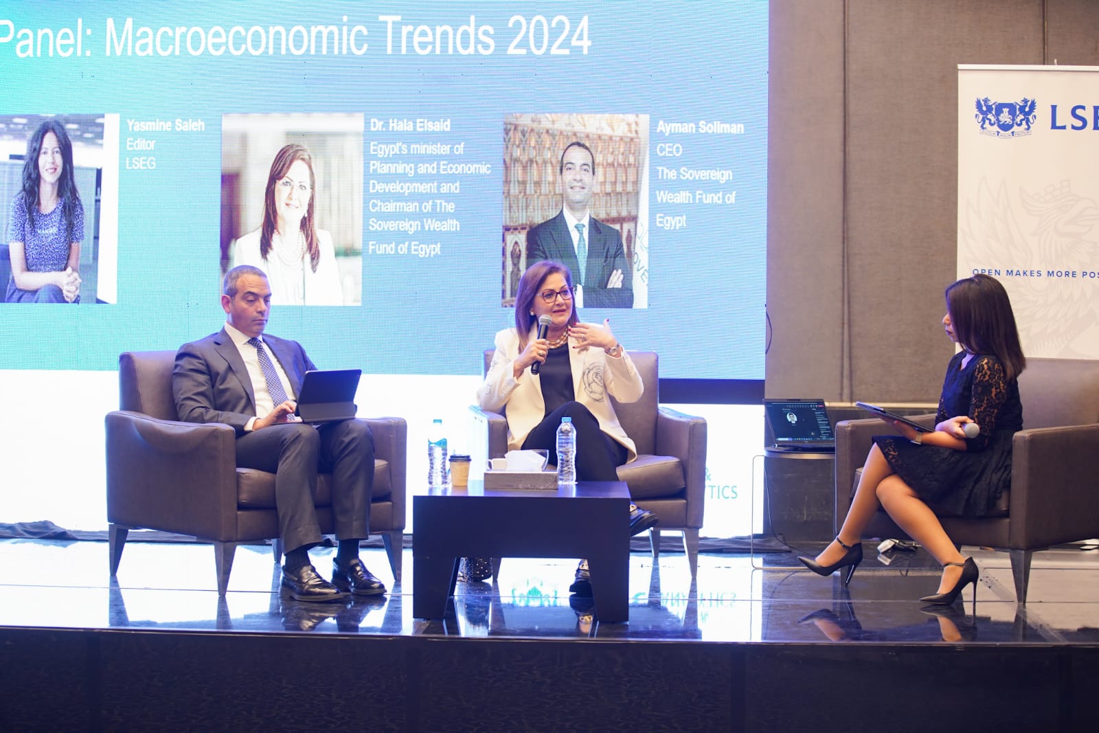 شاركت د هالة السعيد وزيرة التخطيط والتنمية الاقتصادية ورئيس مجلس إدارة صندوق مصر السيادي؛ بجلسة تحت عنوان "الاتجاهات الاقتصادية الكلية في عام 2024" خلال فعاليات الندوة التي عقدتها مجموعة بورصة لندن (LSEG) والتي تدور حول مستقبل وتحديات الأسواق المالية والثروات في مصر والمؤشرات الاقتصادية العالمية والمحلية.
