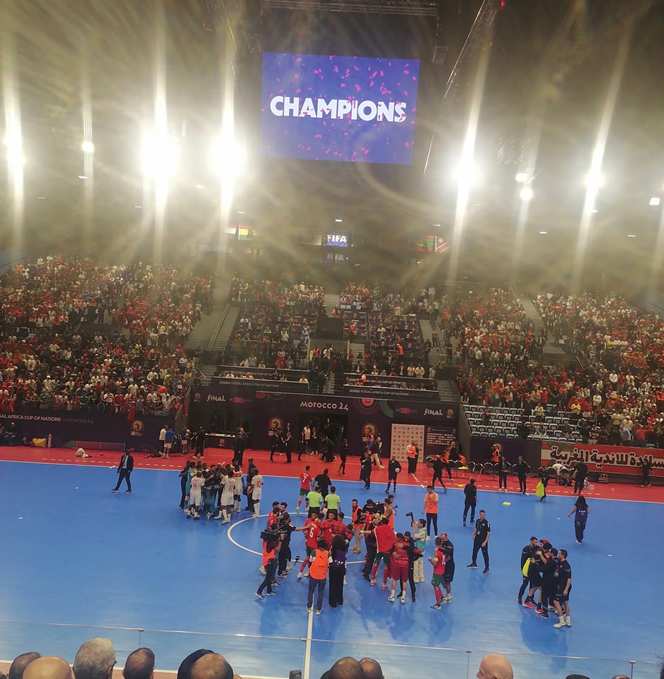 أمم أفريقيا لكرة الصالات، توج المنتخب المغربي لكرة الصالات ببطولة أمم أفريقيا لكرة الصالات للكرة الثالثة على التوالي، بعدما فاز على نظيره المنتخب الأنجولي 5-1 في اللقاء الذي جمع الفريقين في المباراة النهائية للبطولة التي تستضيفها المغرب.