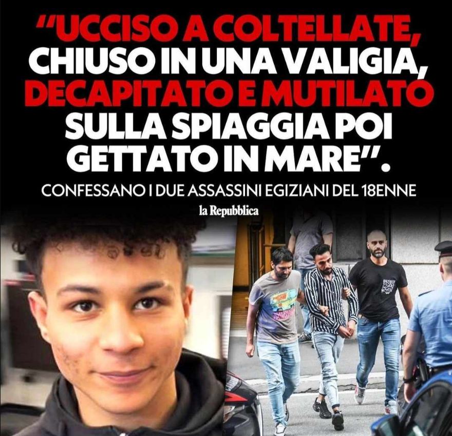 وقالت صحيفة "لا ريبوبليكا" الإيطالية، والقناة الإخبارية الإيطالية TGCOM 24، وقتها، إن الشاب المصري الذي تم قتله وتشويه جثته ويدعى محمود سيد محمد عبد الله البالغ من العمر (19 عامًا)، شارك في قتله مصريان آخران وهما، عبد الوهاب أحمد جمال كامل (26 عامًا) وشهرته "بوب" صاحب محل حلاقة كان يعمل فيه الضحية، ومحمد علي عبد الغني (27 عامًا) شهرته "تيتو".