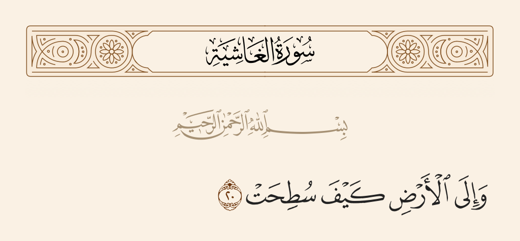 وَإِلَى الْأَرْضِ كَيْفَ سُطِحَتْ أي: كيف سويت وفرشت وبسطت بطريقة تجعل الناس يتمكنون من الانتفاع بخيرها، ومن الاستقرار عليها، وهذا لا ينافي كونها كروية، لأن الكرة إذا اشتد عظمها، كانت القطعة منها كالسطح في إمكان الانتفاع بها.