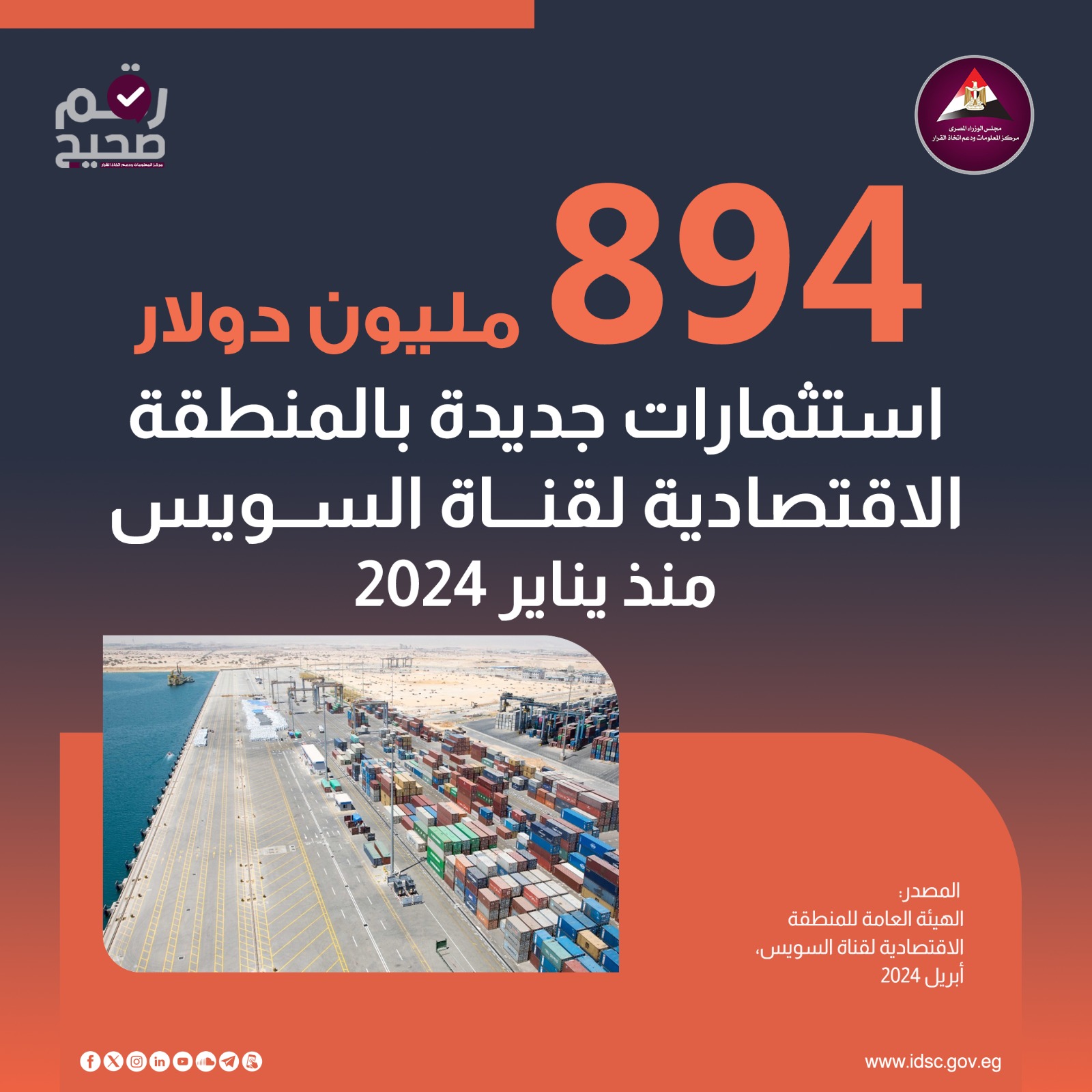 أعلن وليد جمال الدين، رئيس الهيئة العامة للمنطقة الاقتصادية لقناة السويس، أن المنطقة الاقتصادية نجحت منذ يناير 2024 حتى الآن في استقطاب استثمارات بلغت نحو 894 مليون دولار تمثل الاستثمارات الصينية 40% منها.