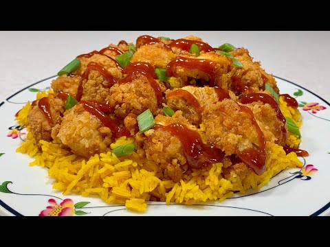 - ثم نقطع الدجاج المقلي إلى مكعبات، وتقدم الريزو فى طبق وعليه قطع الدجاج المقلي والصلصة ويقدم ساخنا