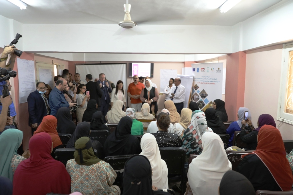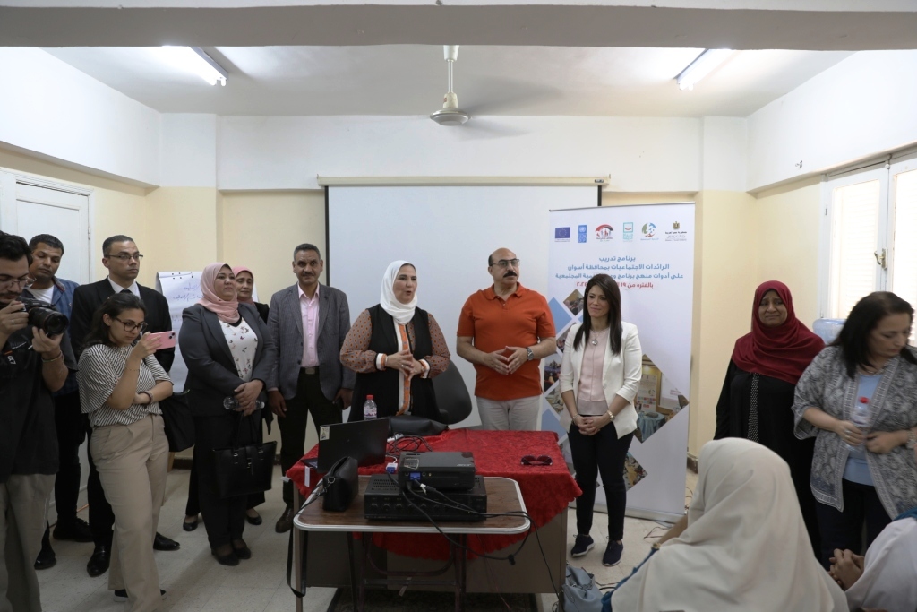 شهدت نيفين القباج وزيرة التضامن الاجتماعي، والدكتورة رانيا المشاط وزيرة التعاون الدولي، والسيد اللواء أشرف عطية محافظ أسوان، والسفير كريستيان برجر رئيس بعثة الاتحاد الأوروبي في مصر، والسيد أليساندرو فراكاسيتي ممثل برنامج الأمم المتحدة الإنمائى، إحدى الدورات التدريبية للرائدات الاجتماعيات بمحافظة أسوان على أدوات منهج برنامج "وعي للتنمية المجتمعية.