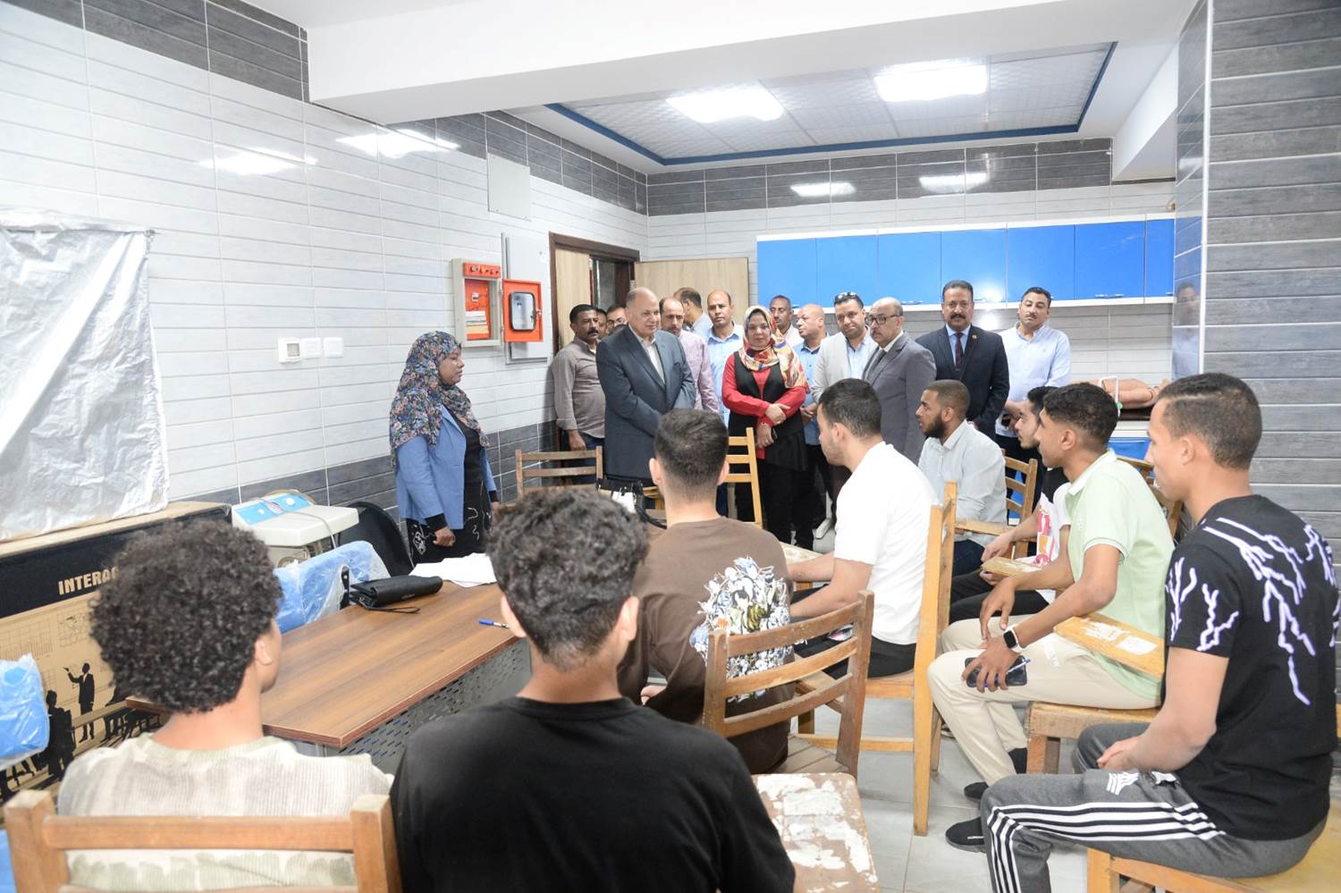 كما تفقد المحافظ قاعات التدريس والتقى الطلبة والطلبات وأجرى حوارًا مفتوحًا معهم وأوصاهم بالإستفادة الكاملة من كافة المناهج والدروس المقدمة لهم لتقديم أفضل خدمة للمرضى مؤكدًا أن المعهد يهدف إلى تخريج كوادر بشرية مؤهلة للعمل في مجال التمريض من أجل رفع جودة الخدمات الطبية في جميع المستشفيات والوحدات الصحية بالمحافظة وسد العجز الذي تعاني منه بعض الوحدات والمستشفيات مؤكدًا أهمية التدريب العملي للطلاب لإعدادهم لممارسة عملهم بالمستشفيات والوحدات الصحية وتأهيلهم لتقديم خدمة طبية لائقة ومتميزة للمريض.