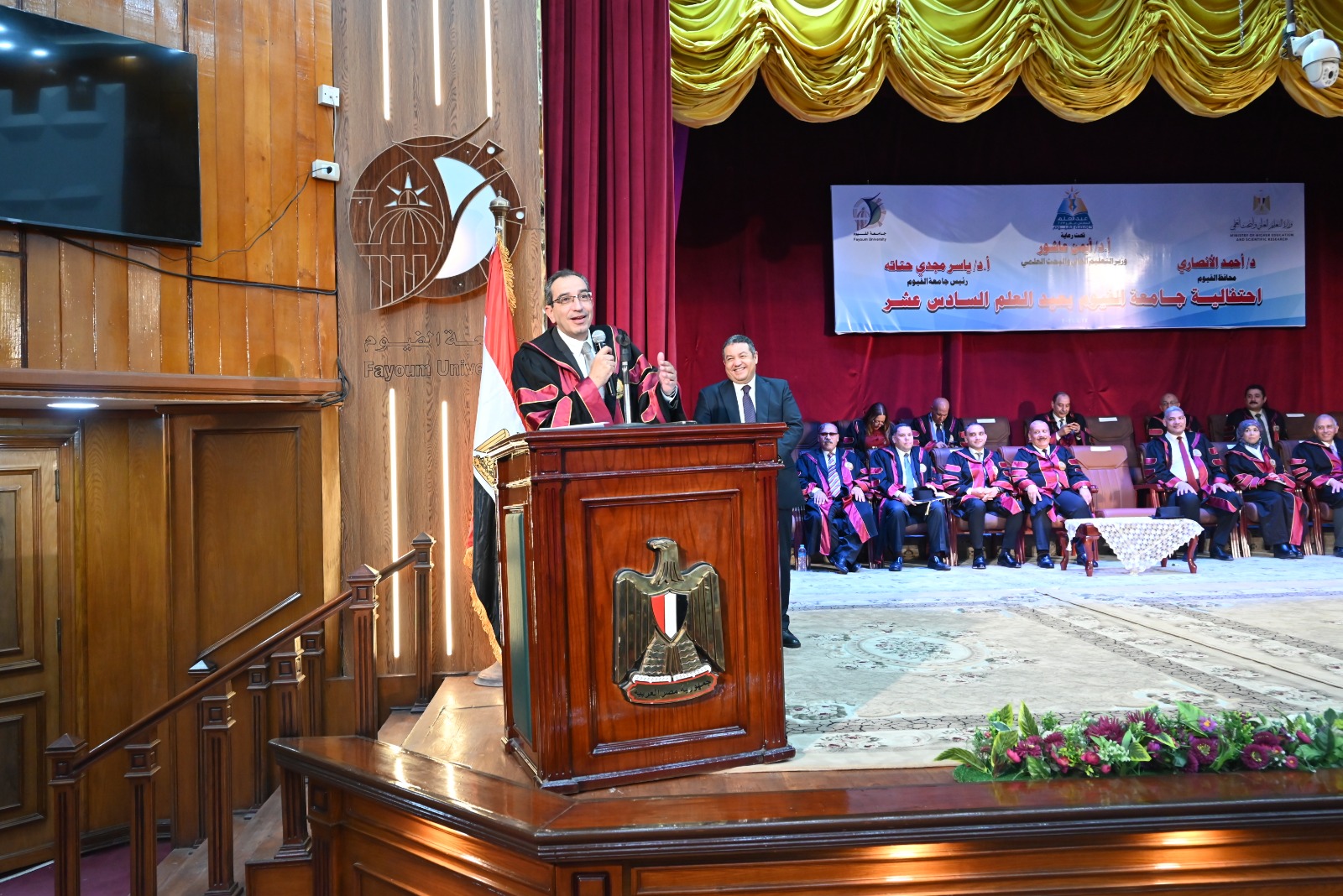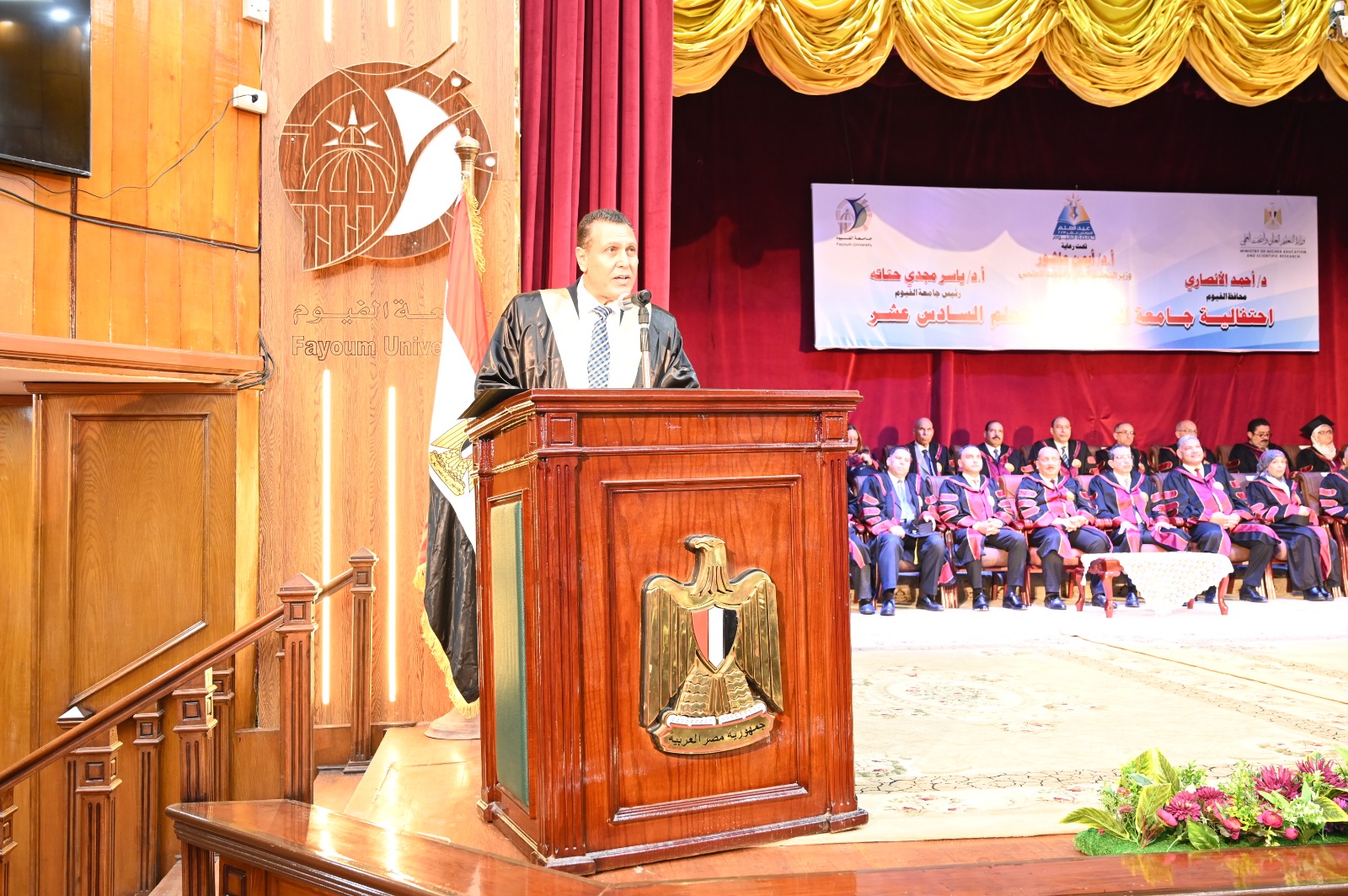 تكريم 1200 طالب وأستاذ في احتفال جامعة الفيوم بعيد العلم الـ16(صور)
