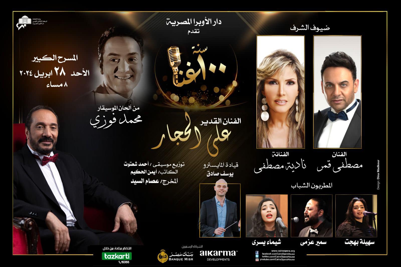 و الحفل الثاني لـ 100 سنة غنا سيُقام يوم الأحد المقبل الموافق 28 من شهر إبريل الجاري، وتبدأ فقرات الحفل فى الثامنة مساءً، وسيكون المطرب مصطفى قمر، والمطربة نادية مصطفى ضيوف الحفل الثاني لــ على الحجار، والذي سيستعرض خلاله كلاسيكيات الراحل محمد فوزي على مسرح دار الأوبر المصرية.