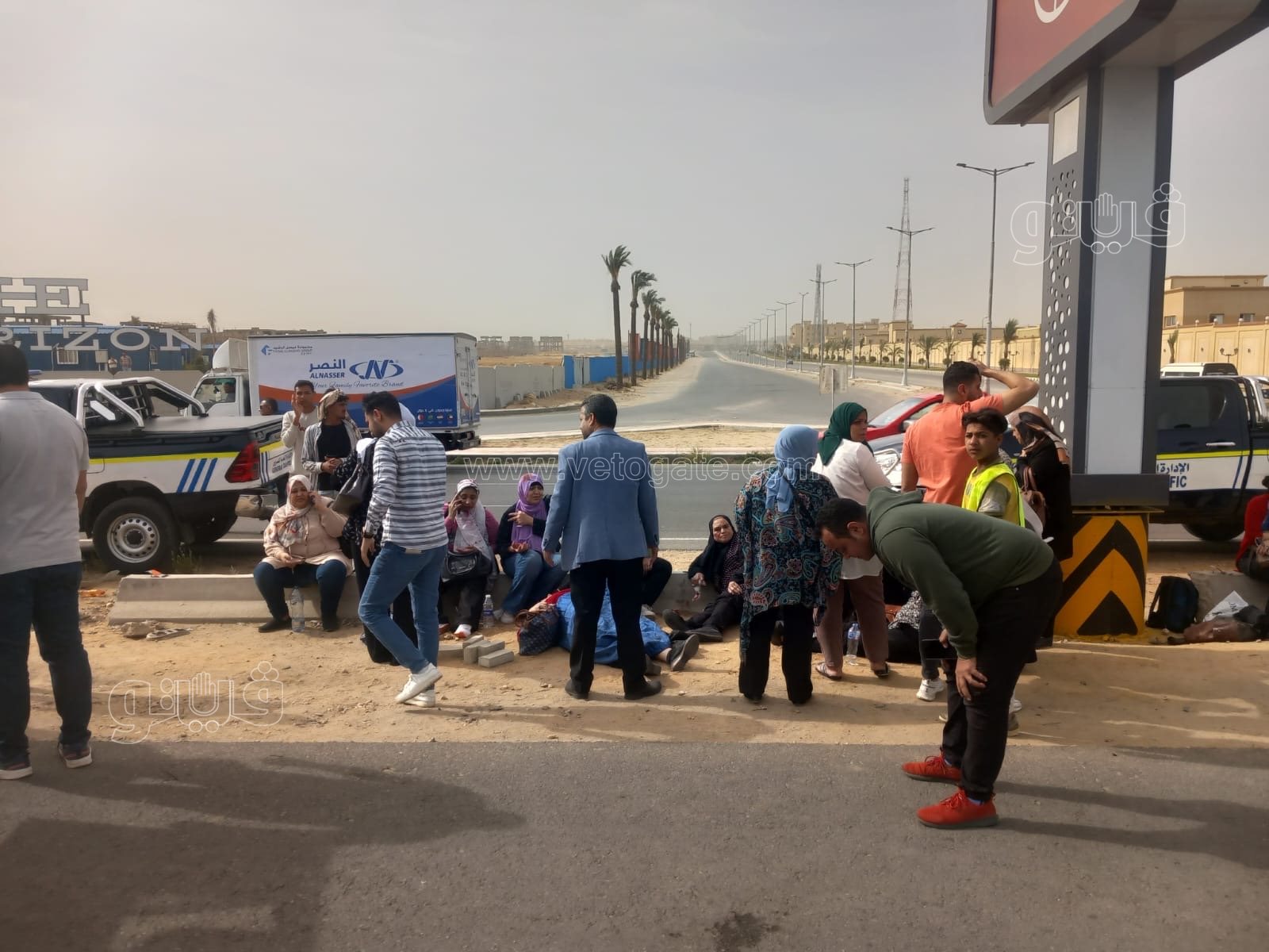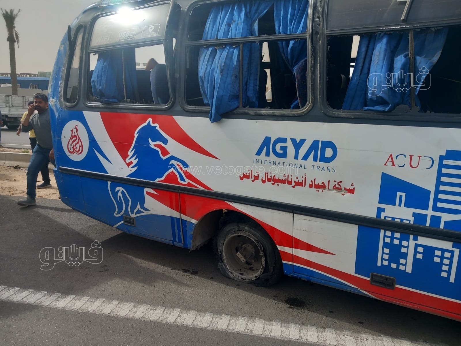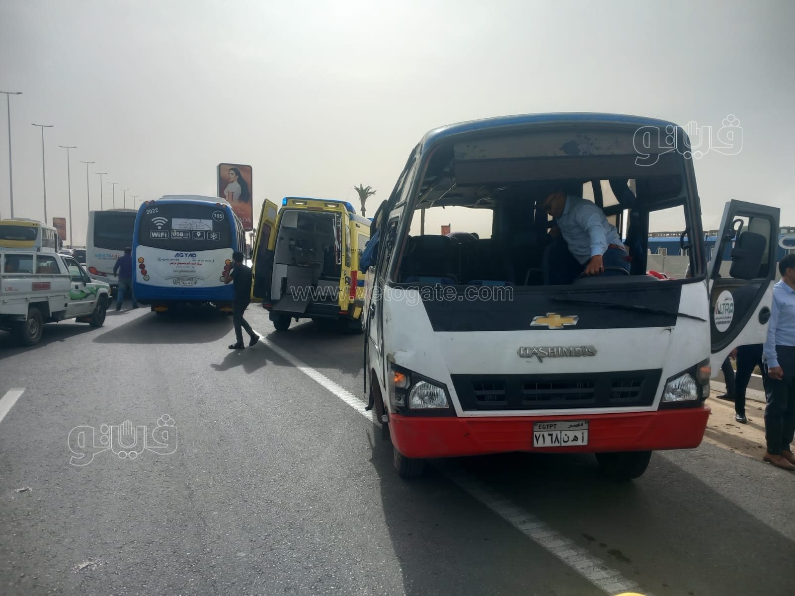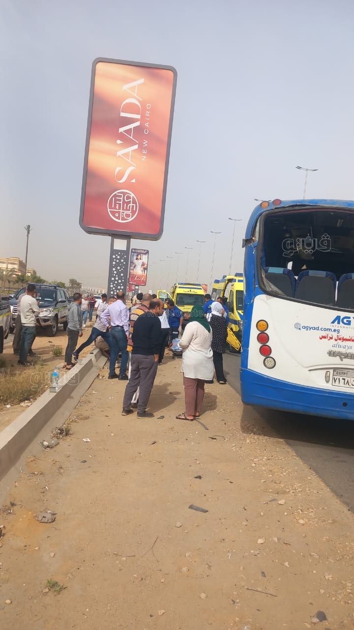 إصابة 21 موظفا بإحدى الشركات بحادث انقلاب أتوبيس بطريق السويس (صور)