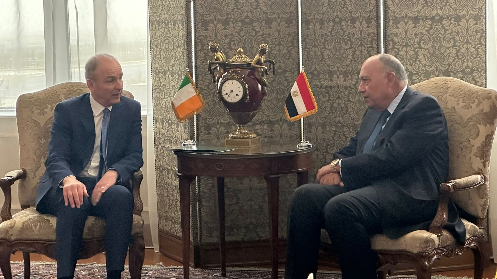عقد وزير الخارجية سامح شكري، اليوم الثلاثاء، جلسة مباحثات ثنائية مغلقة مع ميهول مارتن نائب رئيس الوزراء وزير الخارجية ووزير الدفاع الأيرلندي، الذي يقوم بزيارة إلى القاهرة.