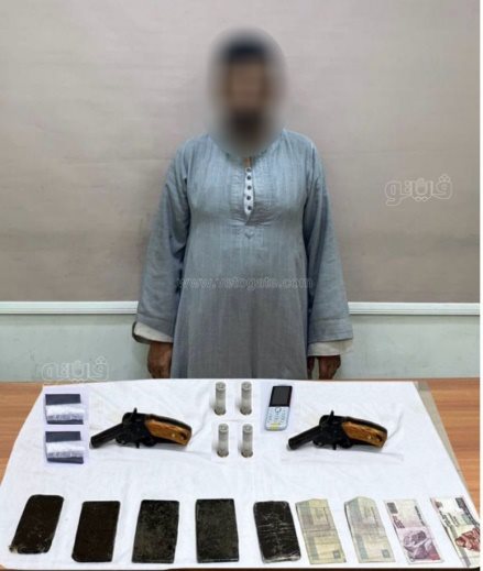 وفى مديرية أمن الأقصر؛ ضبط عنصر إجرامى "له معلومات جنائية" بدائرة مركز شرطة القرنة.. وبحوزته (كيلو جرام لمخدر الحشيش- كمية لمخدرى "الشابو والهيروين"- 2 فرد محلى وعدد من الطلقات) وتقدر القيمة المالية للمواد المخدرة المضبوطة بـ (مليون جنيه) تقريبًا وتم إتخاذ الإجراءات القانونية وجارى العرض على النيابة العامة.