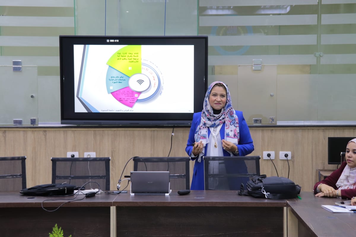 جاء ذلك بحضور الدكتور محمد عطية البيومي نائب رئيس الجامعة لشئون التعليم والطلاب، ومدير مركز القياس والتقويم بجامعة المنصورة، الدكتورة مها العشماوي، وعميد كلية الطب البيطري، الدكتور منى إبراهيم دكروى قائم بعمل عميد كلية التجارة، الدكتور إيمان زهران نائب المدير التنفيذي للمشروع ومدير وحدة القياس والتقويم بكلية الطب البيطري، الدكتور مصطفى الفقى مدير وحدة القياس والتقويم بكلية التجارة.