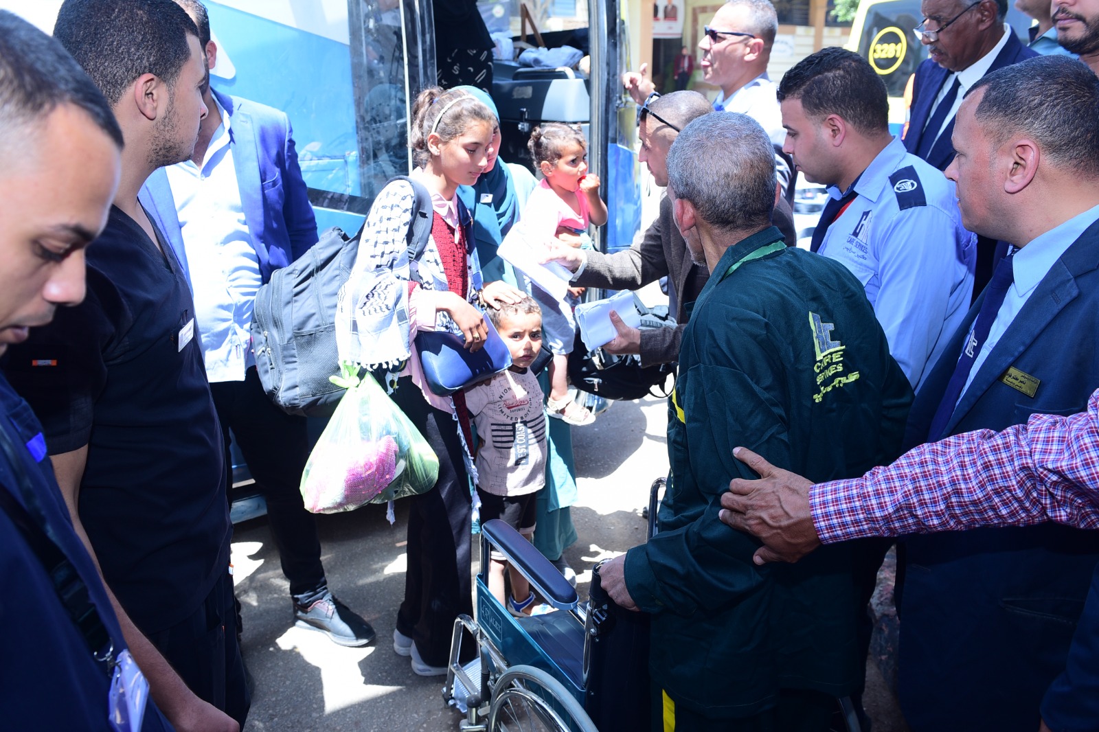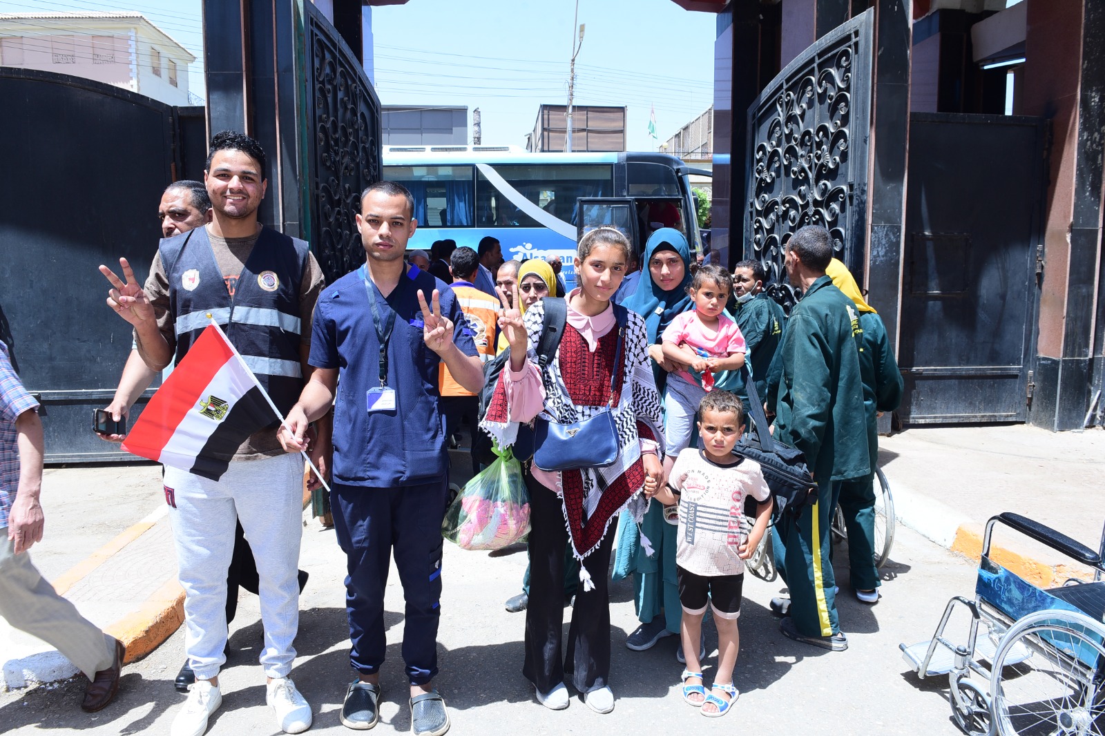 الجدير بالذكر أن جميع كوادر المستشفى الطبية والإدارية اصطفوا على الجانبين محملين بالورود ورافعين أعلام مصر ترحيبًا وابتهاجًا مع أخوتهم المصابين وذويهم من أبناء قطاع غزة ضيوفًا اعزاء على قلوبهم إلى ان يكلل الله لهم الشفاء العاجل ويعودوا الي أوطانهم فرحين.