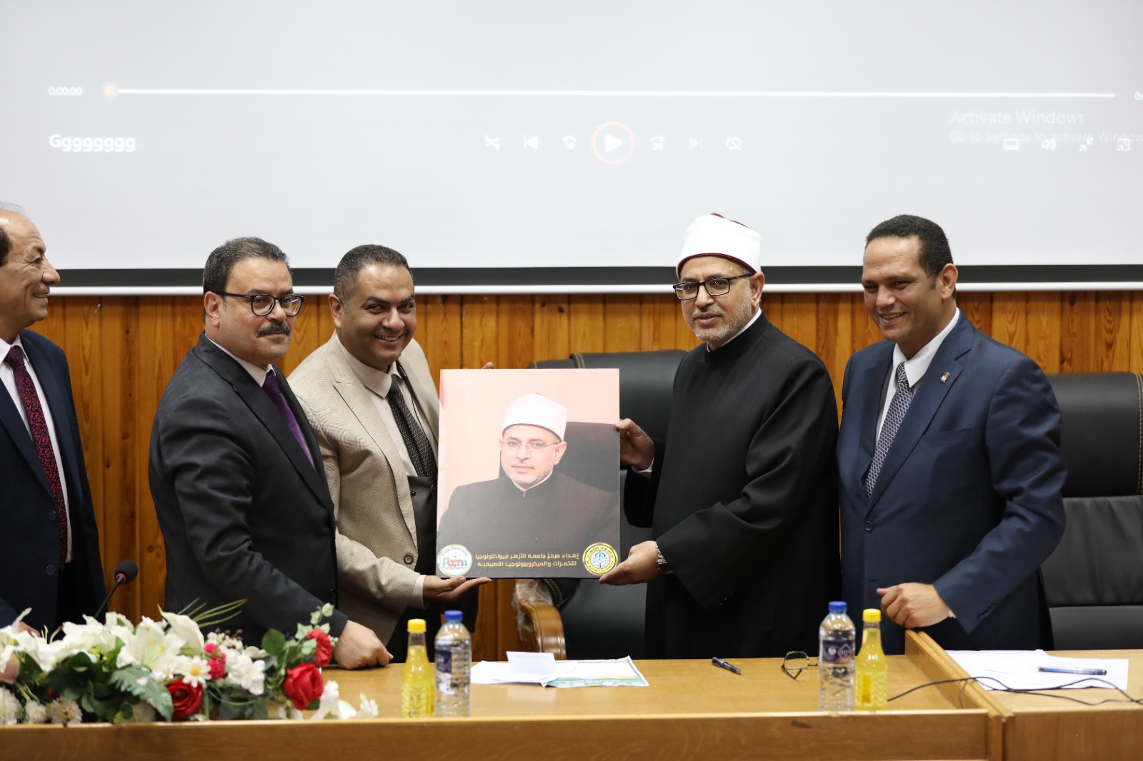 وفي الختام قام الدكتور محمود رمضان صوفي، مدير المركز منظم الملتقي العلمي الثاني، بتكريم فضيلة الدكتور سلامة جمعة داود، رئيس الجامعة، ومنحه درع تكريم؛ لجهوده في دعم مسيرة البحث العلمي والعملية التعليمية في المركز وجميع المراكز البحثية بجامعة الأزهر بالقاهرة والأقاليم، وبورتريه لفضيلة رئيس الجامعة.