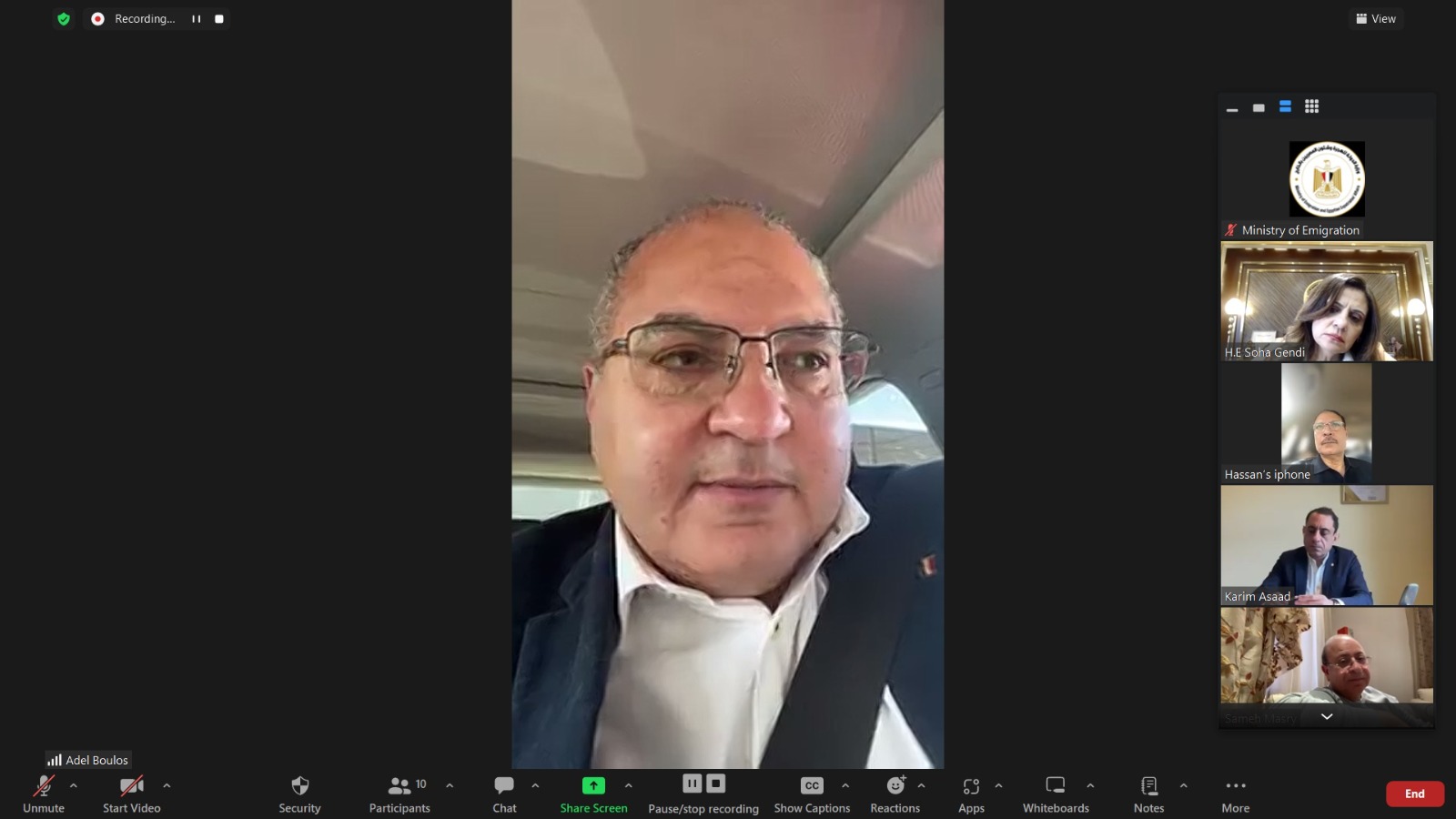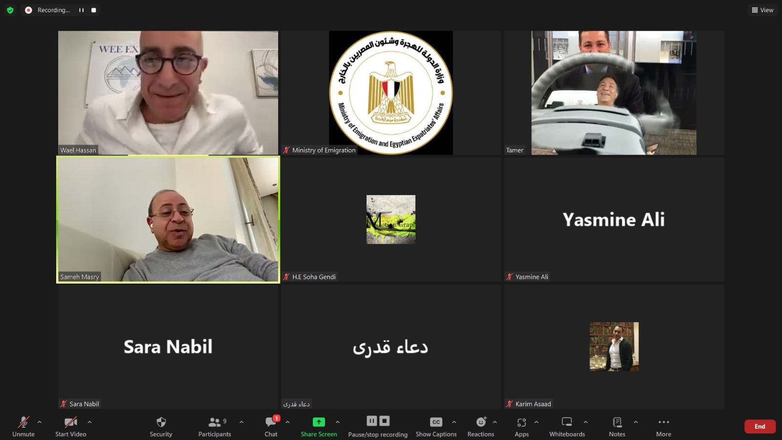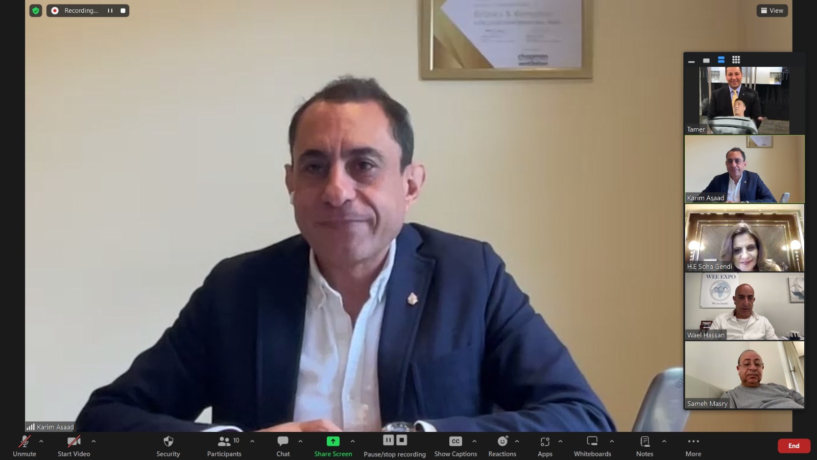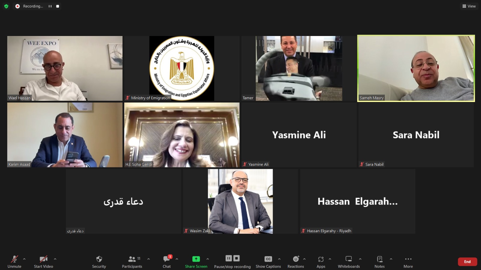 وشارك في الاجتماع: كريم أسعد، المؤسس والرئيس التنفيذي لشركة كيمبكس kempex international وشركة kempton ltd& Brooks، عادل بولس، رجل الأعمال ورئيس شبكة الأعمال المصرية الكندية، د. حسن الجراحي، رجل الأعمال بالسعودية، ورئيس مجلس إدارة "الشركة المصرية لطباعة نماذج المعلومات"، وتامر هدايت، رئيس مجلس إدارة شركة "نت سينك"، والمصرفي وائل حسن، مستشار التمويل العقاري السابق في بنك جي بي مورجان تشيس، والمهندس سامح المصري، رئيس مجموعة شركات تماس في دولة الإمارات.