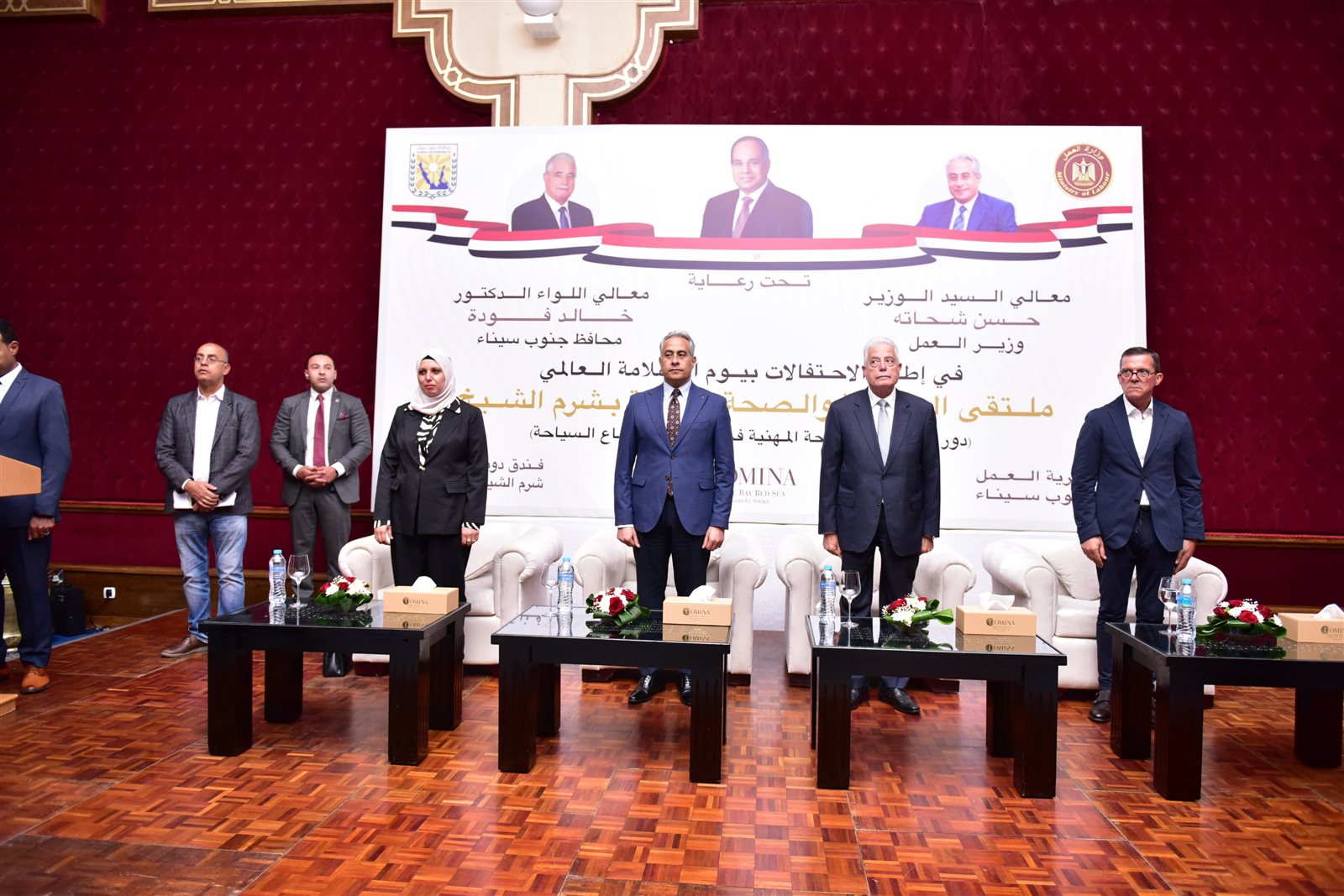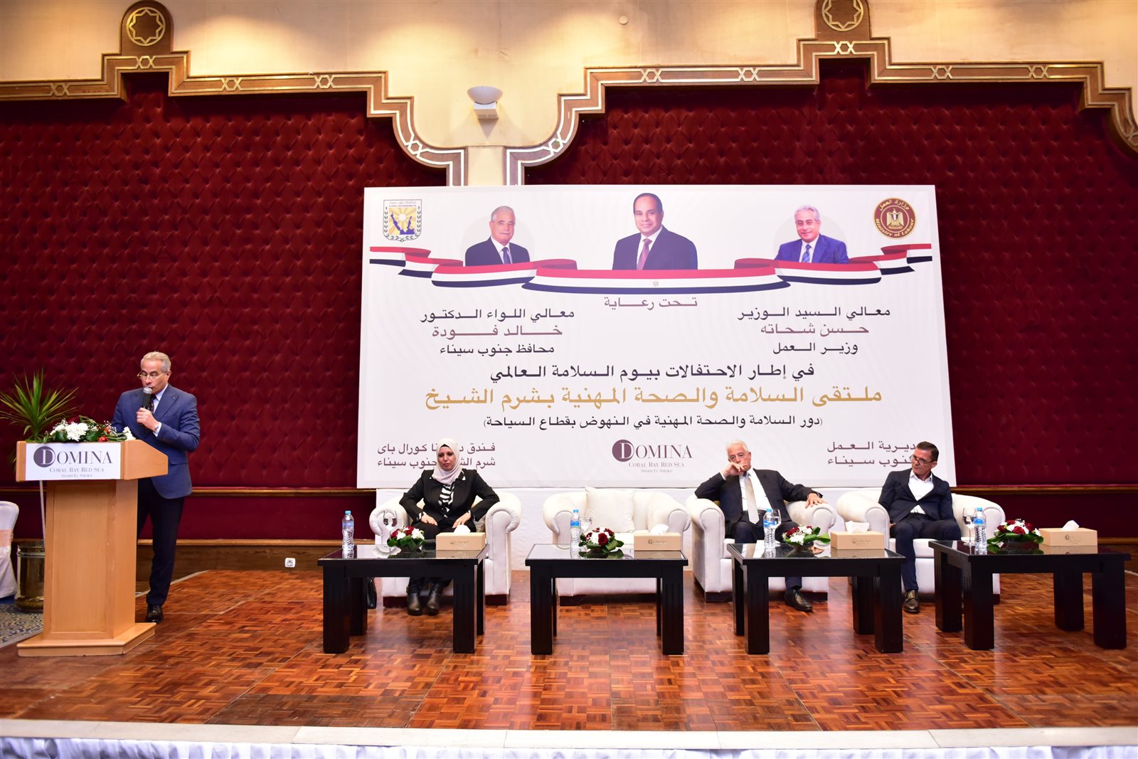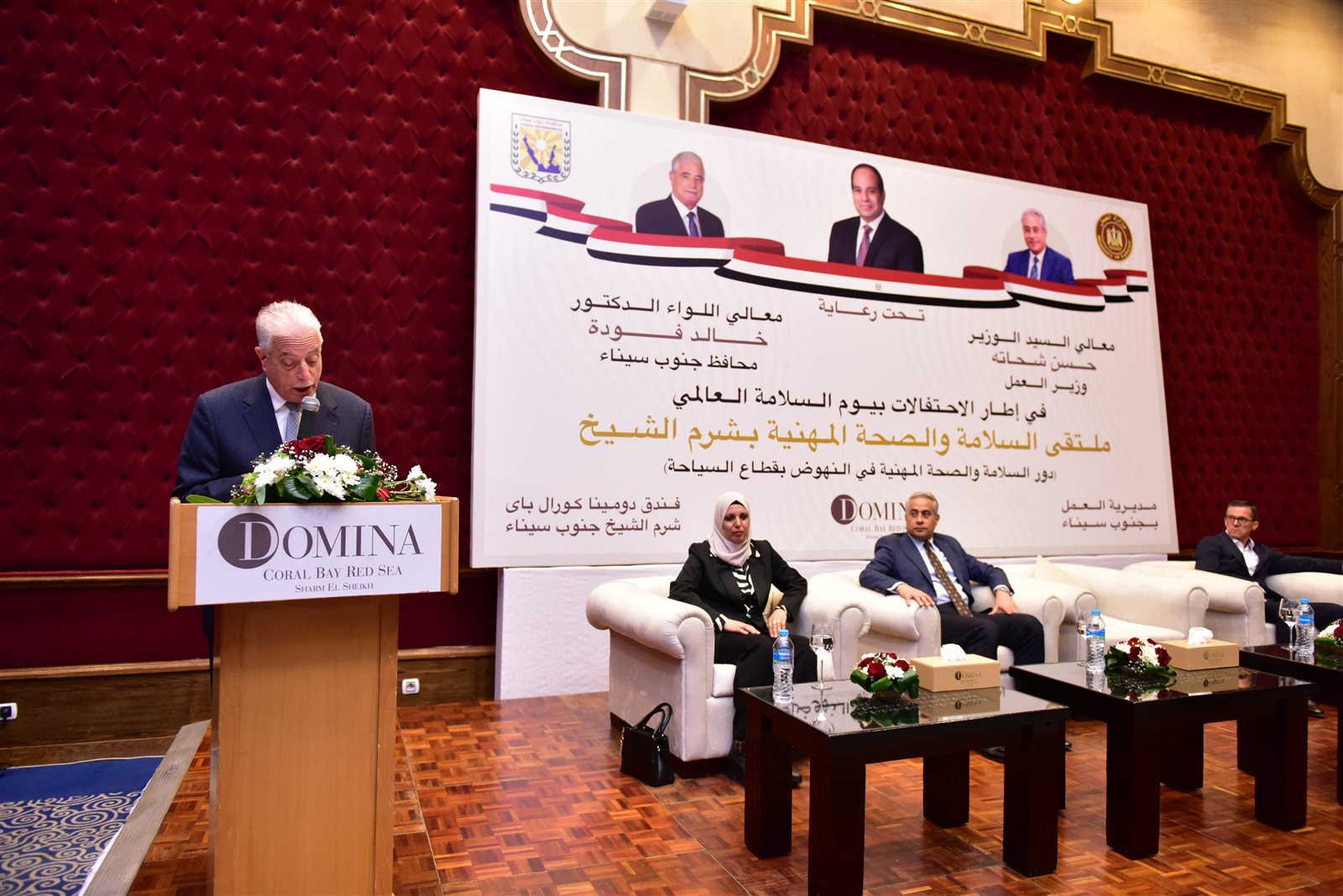 وتحدث المحافظ اللواء خالد فودة،مرحبا بالحضور،وتقدم بالتهنئة لوزارة العمل على الاختيار الموفق لعقد الملتقى الأول للسلامة والصحة المهنية،في مدينة شرم الشيخ،بإعتبارها عاصمة المؤتمرات،وحصولها على الجائزة الذهبية كأفضل وجهة سياحية في العالم،والاعتراف الدولي بها كمدينة آمنة .وقال كل ذلك كان لن يتحقق لولا أن شرم الشيخ متميزة في معايير السلامة والصحة المهنية..