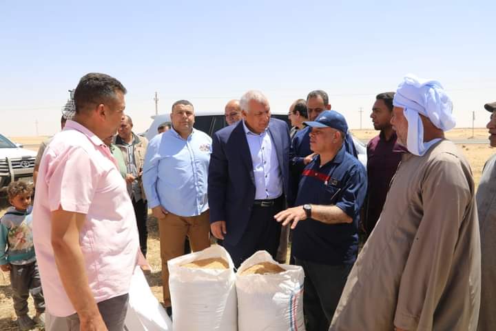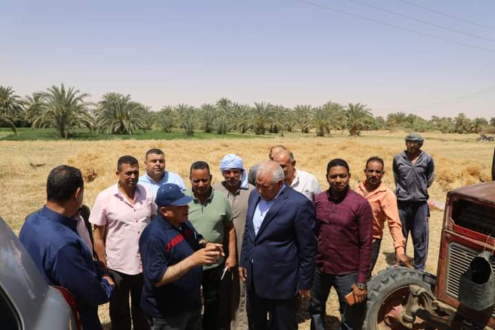 بمساحة 6150 فدانا، محافظ الوادي الجديد يتابع حصاد محصول القمح بواحة باريس