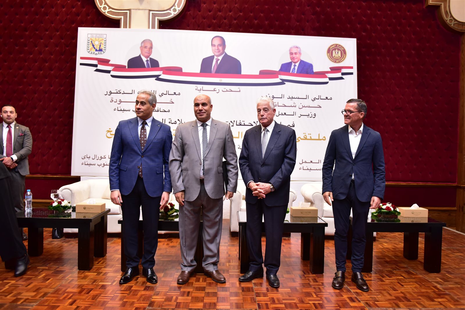 كان الوزير وفي بداية جولته، قد سلم عقود عمل لذوى الهمم، وشهد فعاليات ختام ملتقى السلامة والصحة المهنية، بحضور اللواء خالد فودة محافظ جنوب سيناء.