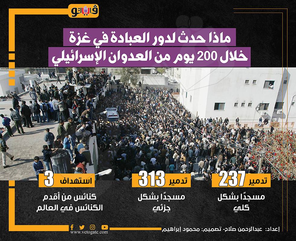 ماذا حدث لدور العبادة في غزة خلال 200 يوم من العدوان الإسرائيلي (انفوجراف) الأربعاء 24/أبريل/2024 - 09:49 ص 4/24/2024 9:49:15 AM مساجد غزة، فيتو عبدالرحمن صلاح شارك طباعة 18 حجم الخط شارك طباعة دور العبادة في غزة العدوان الإسرائيلي غزة أقدم الكنائس في العالم قطاع غزة جيش الاحتلال