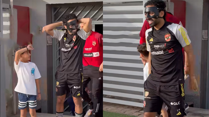 حسين الشحات يظهر بقناع الوجه في تدريبات الأهلي