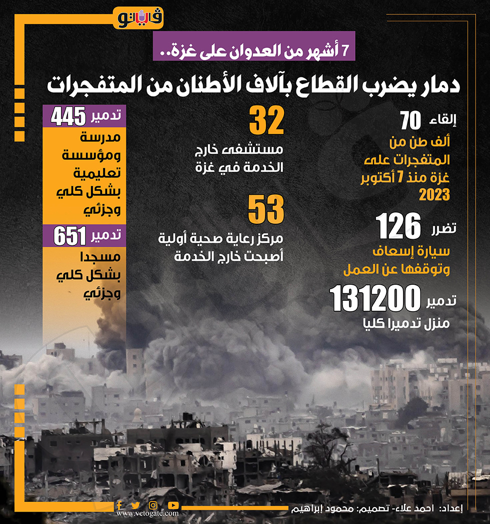 7 أشهر من العدوان على غزة.. دمار يضرب القطاع بآلاف الأطنان من المتفجرات (انفوجراف) الثلاثاء 23/أبريل/2024 - 09:53 م 4/23/2024 9:53:46 PM غزة، فيتو احمد علاء شارك طباعة 18 حجم الخط شارك طباعة العدوان على غزة غزة العدوان الاسرائيلي علي غزة 200 يوم من العدوان على جيش الاحتلال