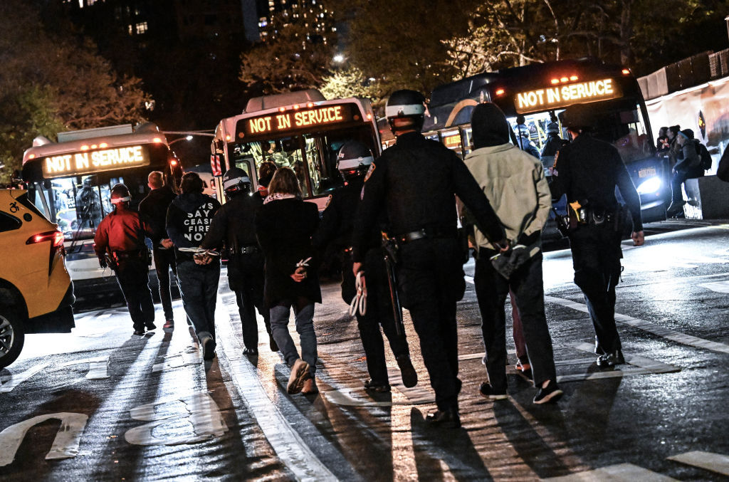 واعتقلت السلطات حشود المتظاهرين واقتادتهم إلى حافلات هيئة النقل الحضرية MTA التي كانت تستخدم لنقلهم إلى الحجز.